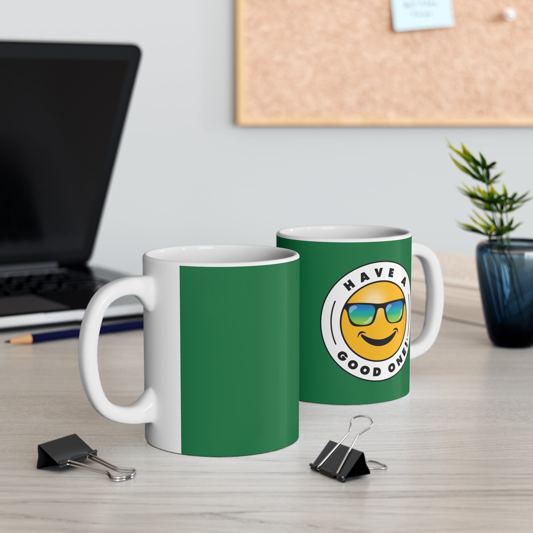 Ceramic Mug Dark Green Color With Blue and Green Logo - 11oz