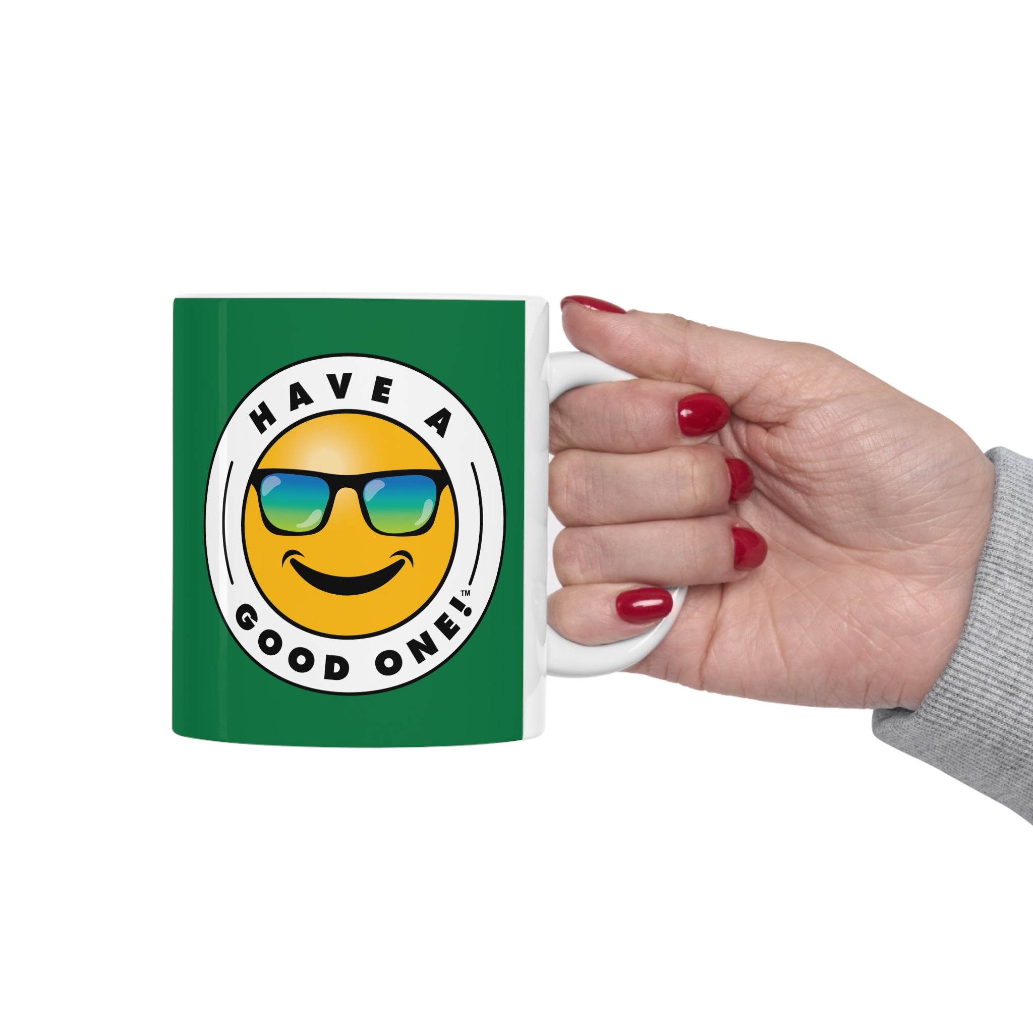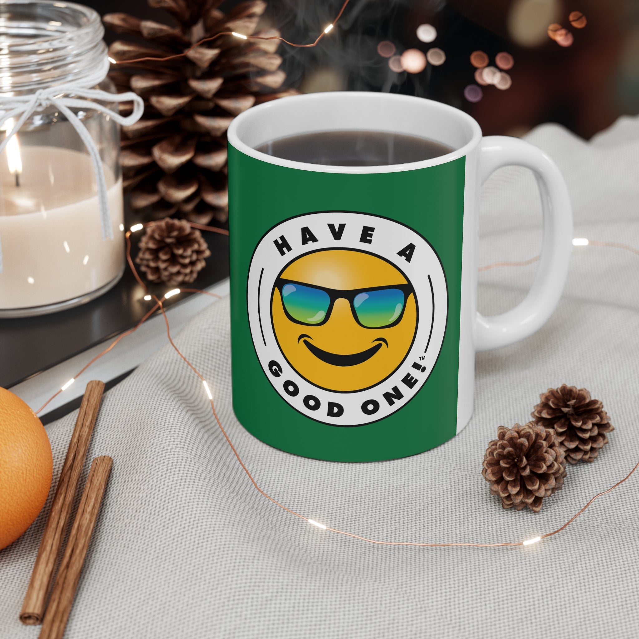 You can get cozy and warm up to an nice cup of coffee, tea or soup with this feel good and fun ceramic coffee mug! Anything you enjoy out of this mug will make that "Aaahhh!" moment even better. The mug is BPA and Lead-free, microwave and dishwasher-safe, and made of durable ceramic in this ideal 11-ounce size. This is the perfect gift for coffee, tea, and chocolate lovers. No matter what you are enjoying in this mug you are sure to Have A Good One! while using it!