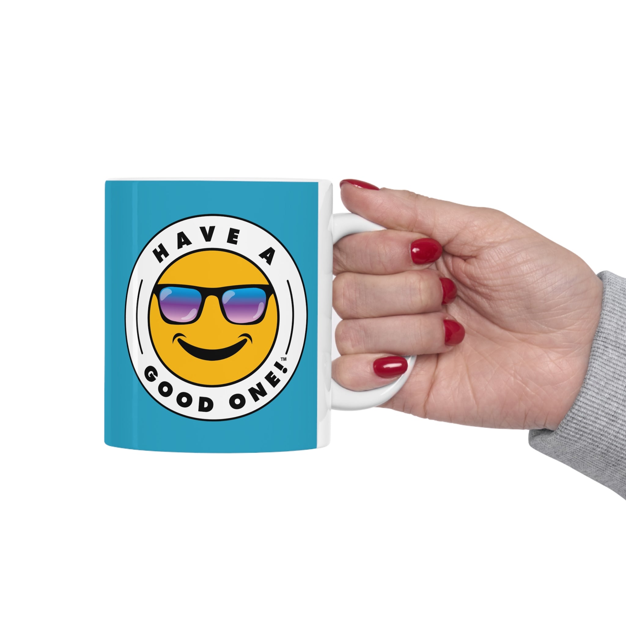You can get cozy and warm up to an nice cup of coffee, tea or soup with this feel good and fun ceramic coffee mug! Anything you enjoy out of this mug will make that "Aaahhh!" moment even better. The mug is BPA and Lead-free, microwave and dishwasher-safe, and made of durable ceramic in this ideal 11-ounce size. This is the perfect gift for coffee, tea, and chocolate lovers. No matter what you are enjoying in this mug you are sure to Have A Good One! while using it!