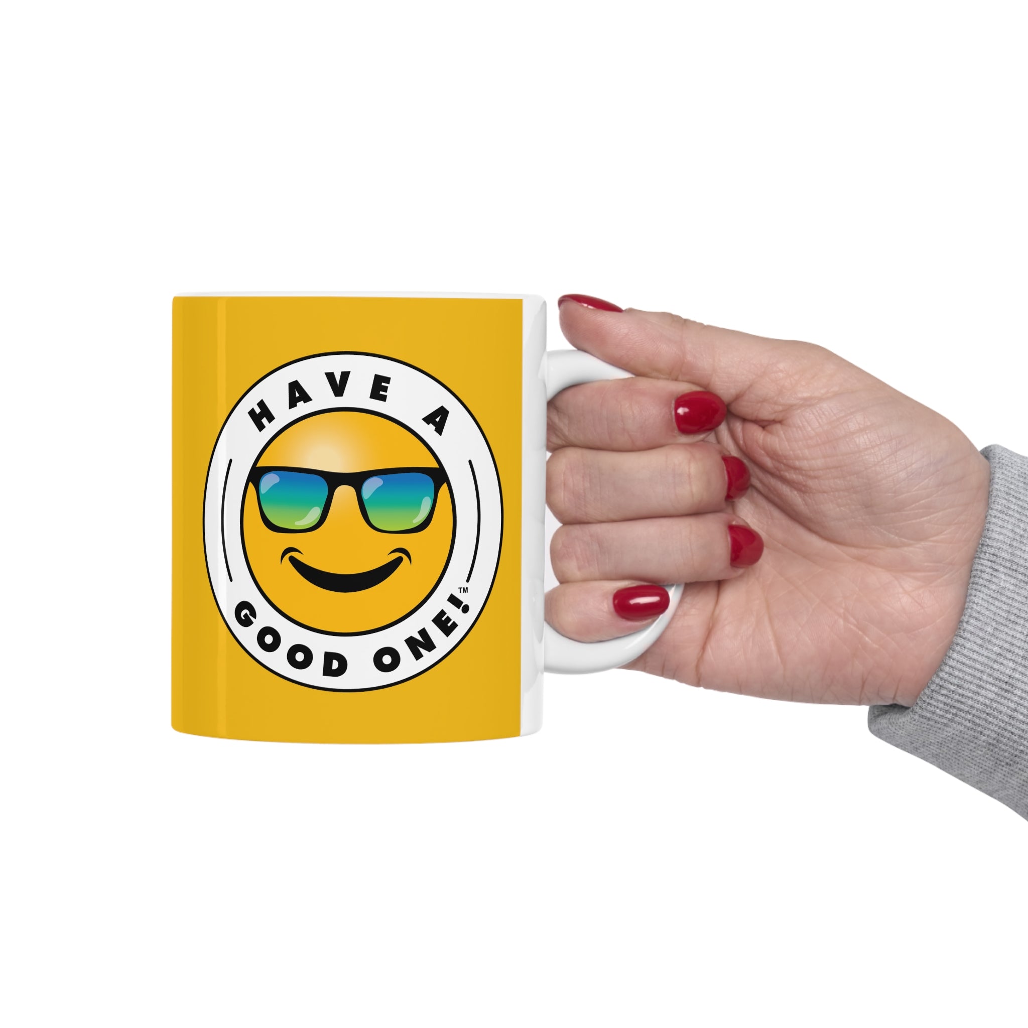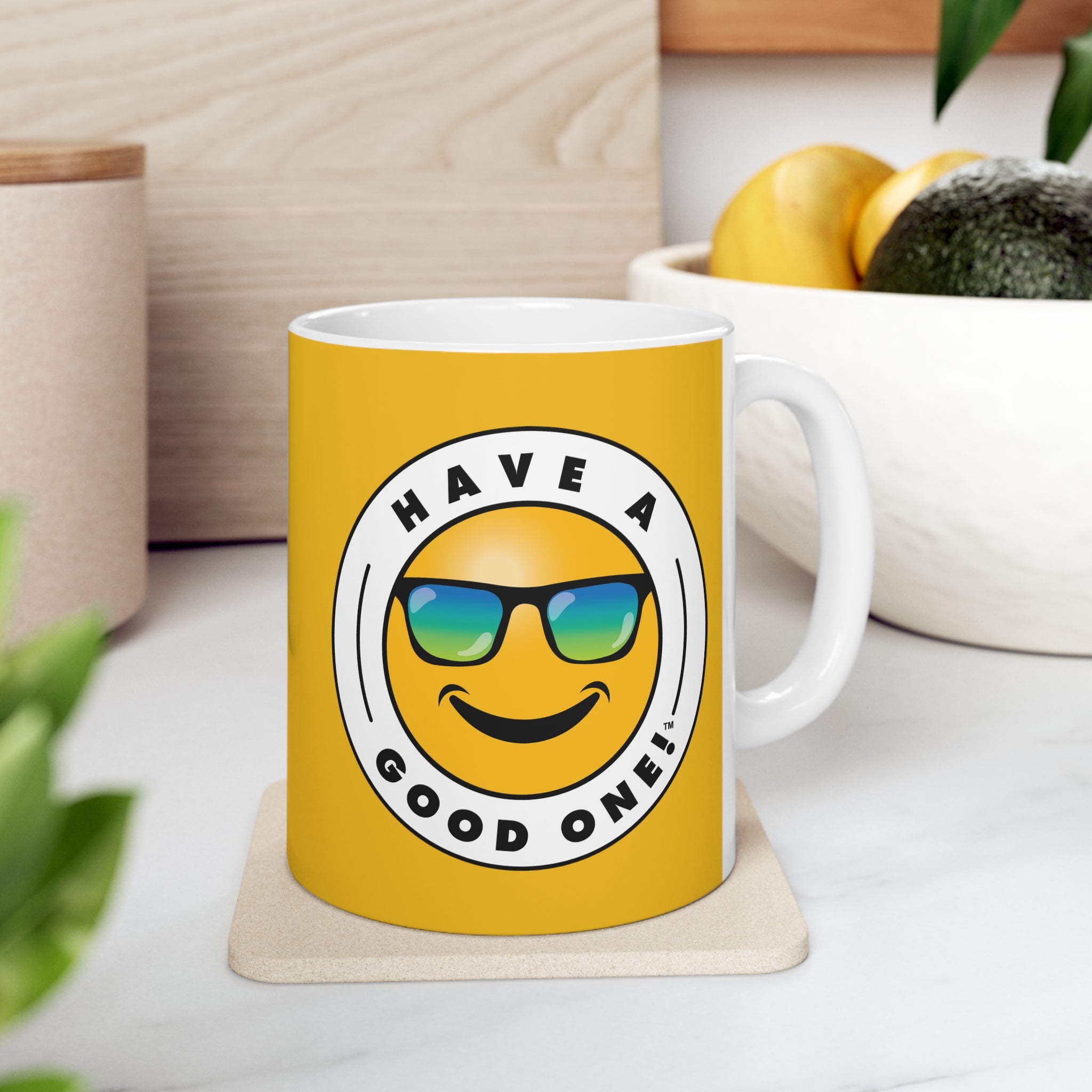 You can get cozy and warm up to an nice cup of coffee, tea or soup with this feel good and fun ceramic coffee mug! Anything you enjoy out of this mug will make that "Aaahhh!" moment even better. The mug is BPA and Lead-free, microwave and dishwasher-safe, and made of durable ceramic in this ideal 11-ounce size. This is the perfect gift for coffee, tea, and chocolate lovers. No matter what you are enjoying in this mug you are sure to Have A Good One! while using it!