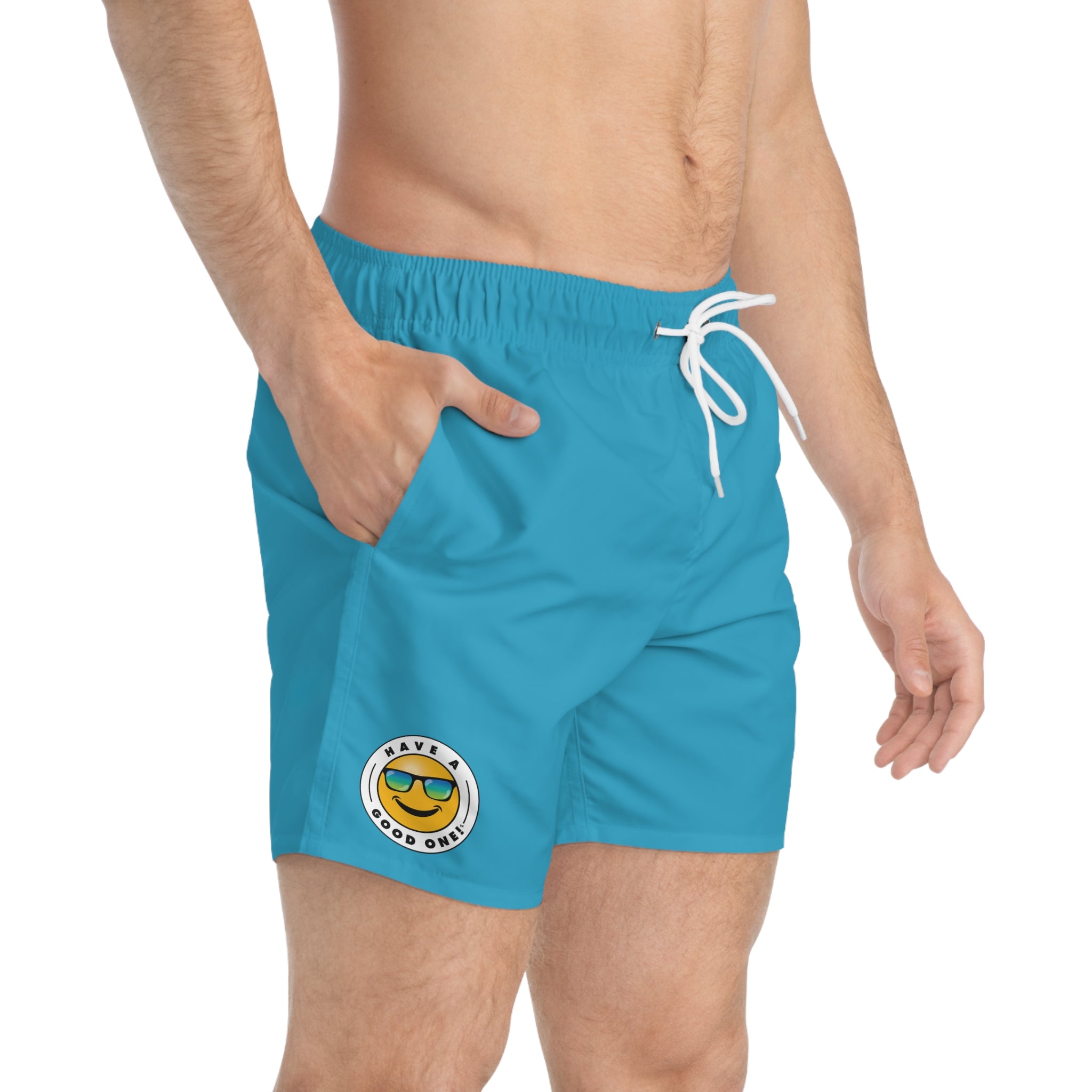 Copy of Men's Have A Good One! Swim Trunks - Turquoise Color With Blue Green Logo