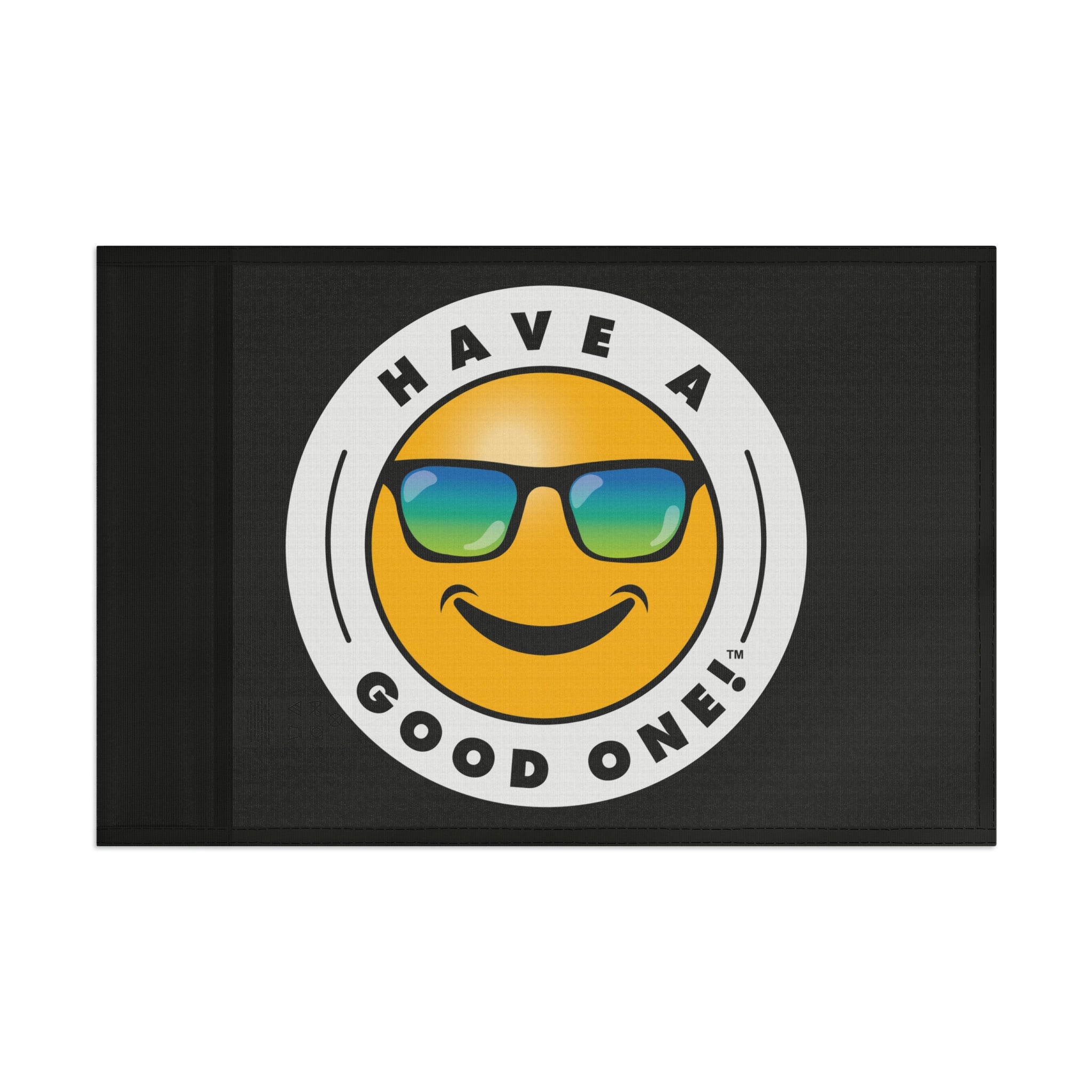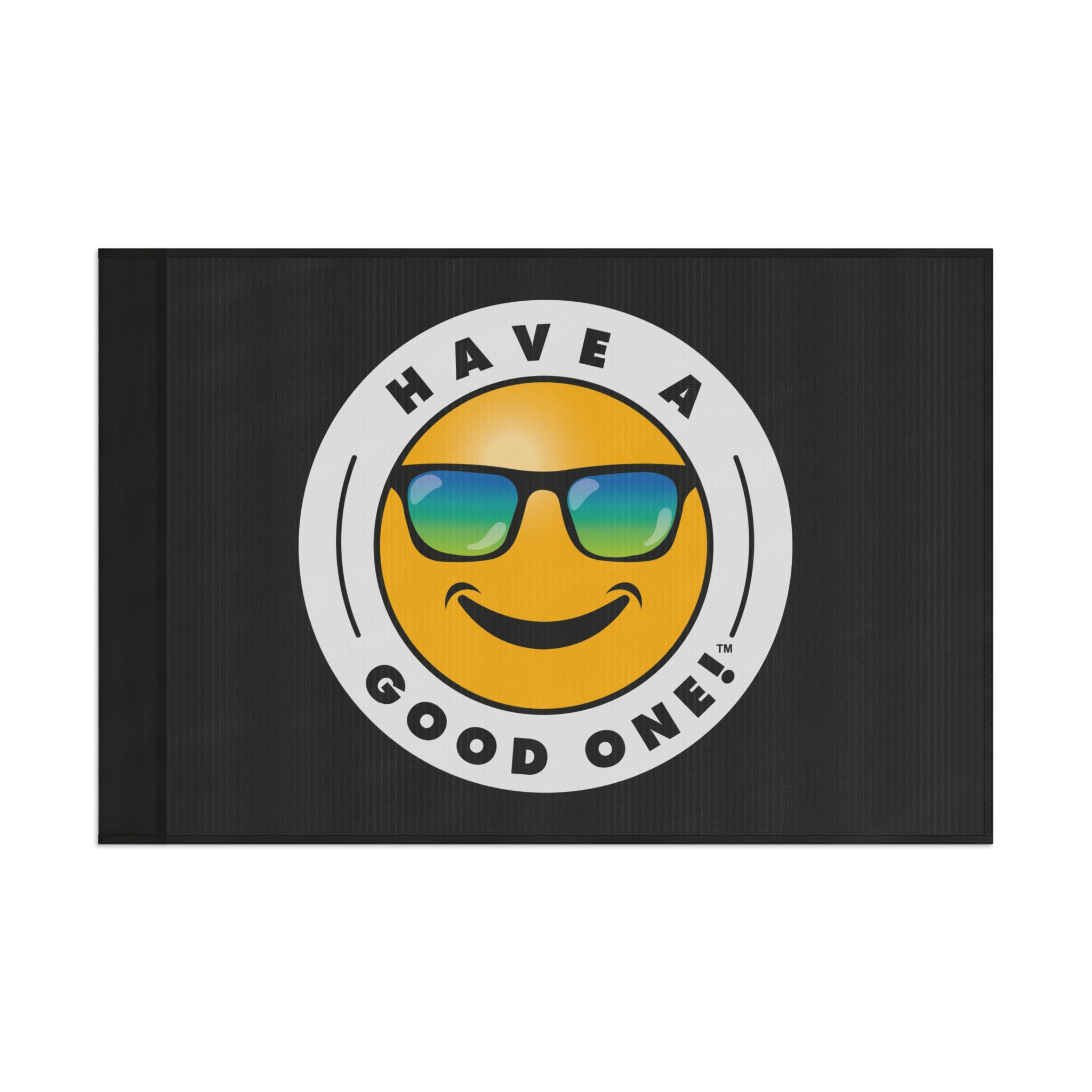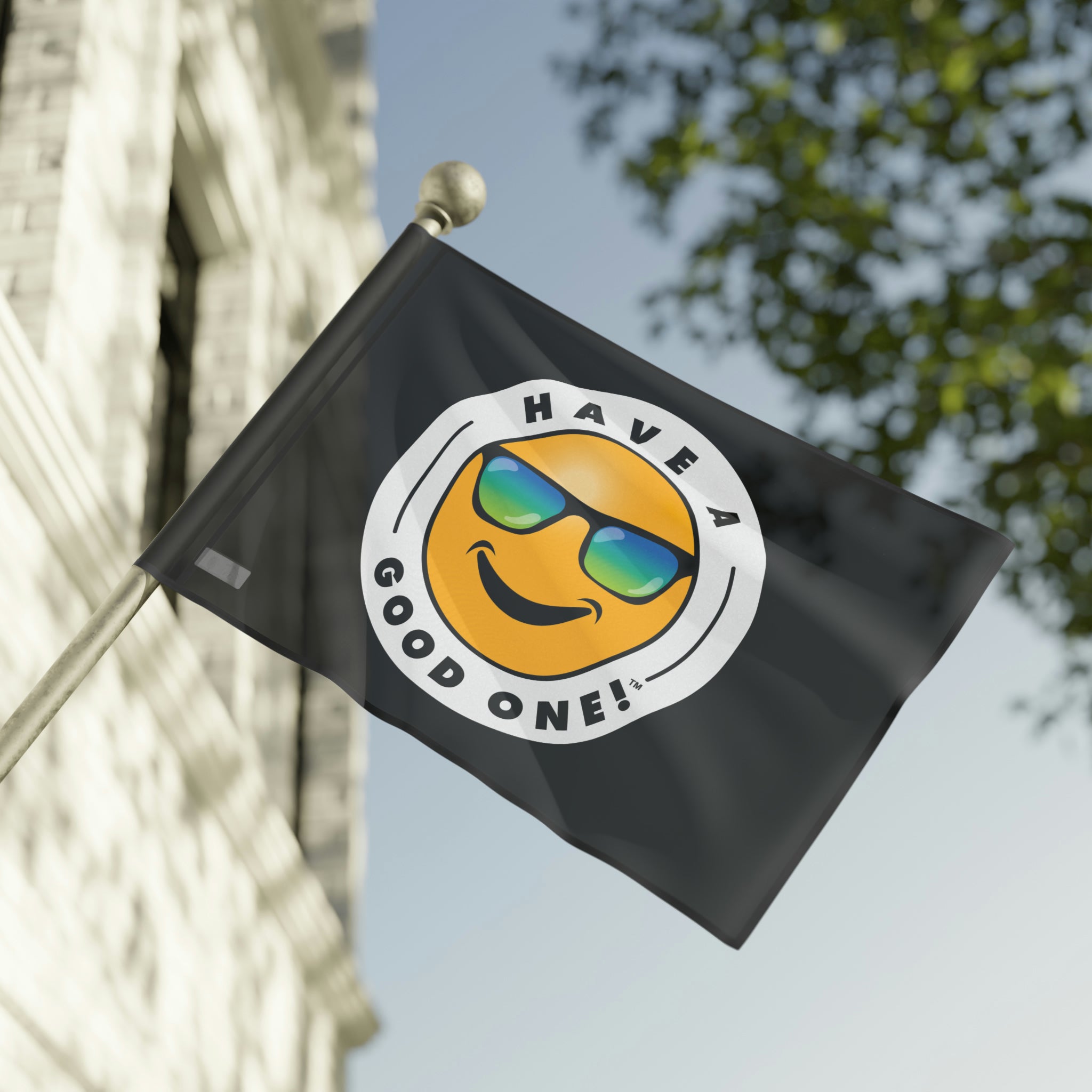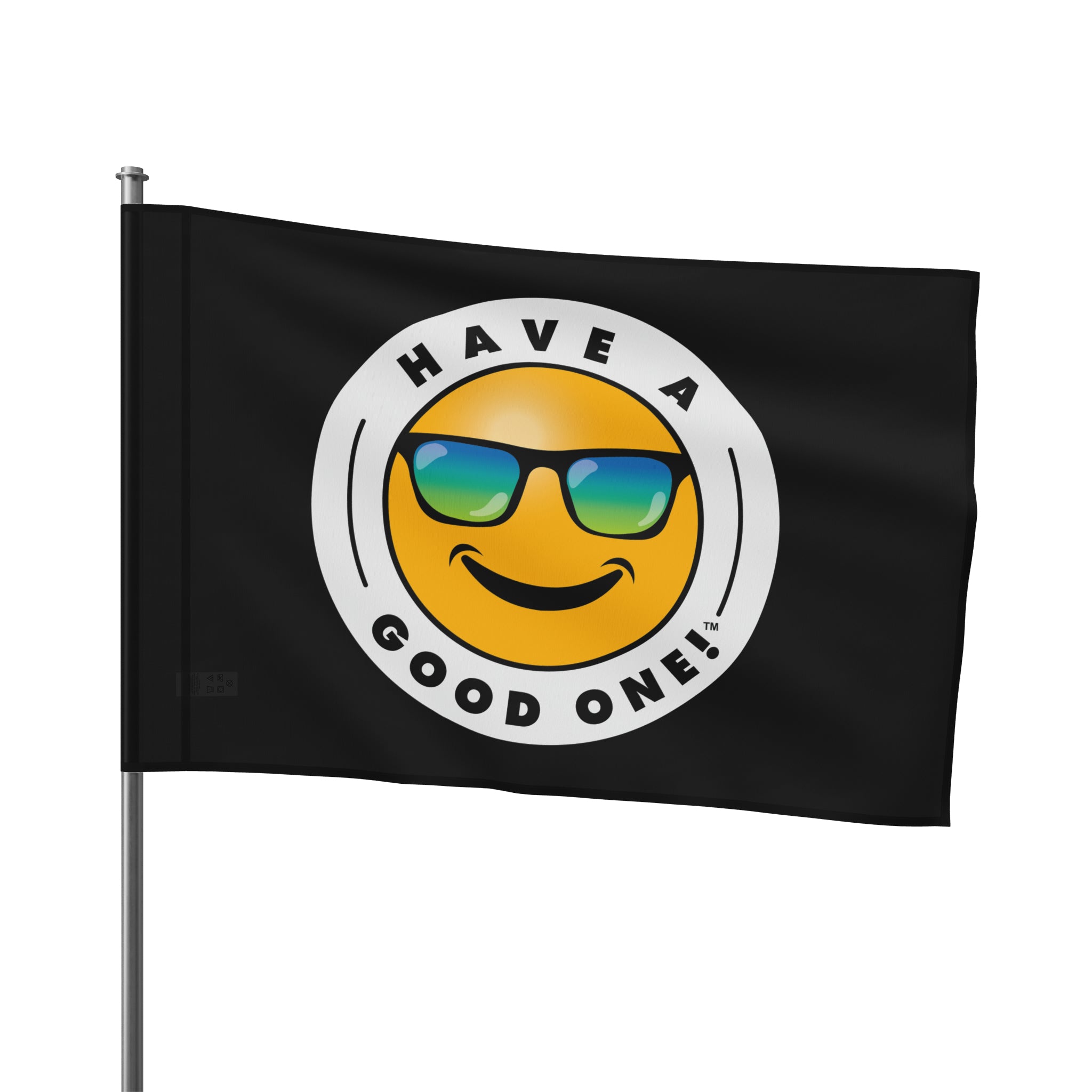 Festive and Fun Have A Good One! Flag - Black Color With Blue and Green Logo