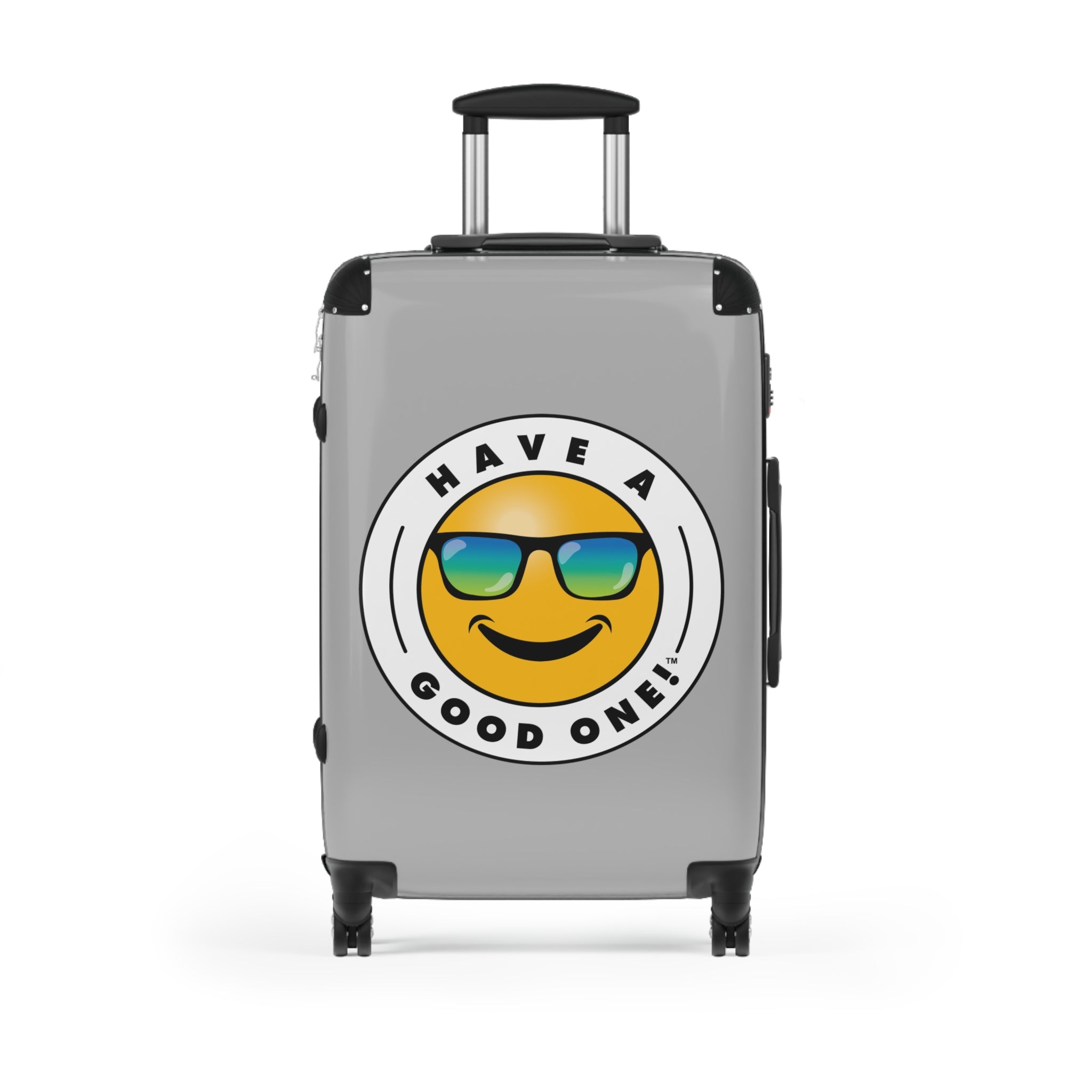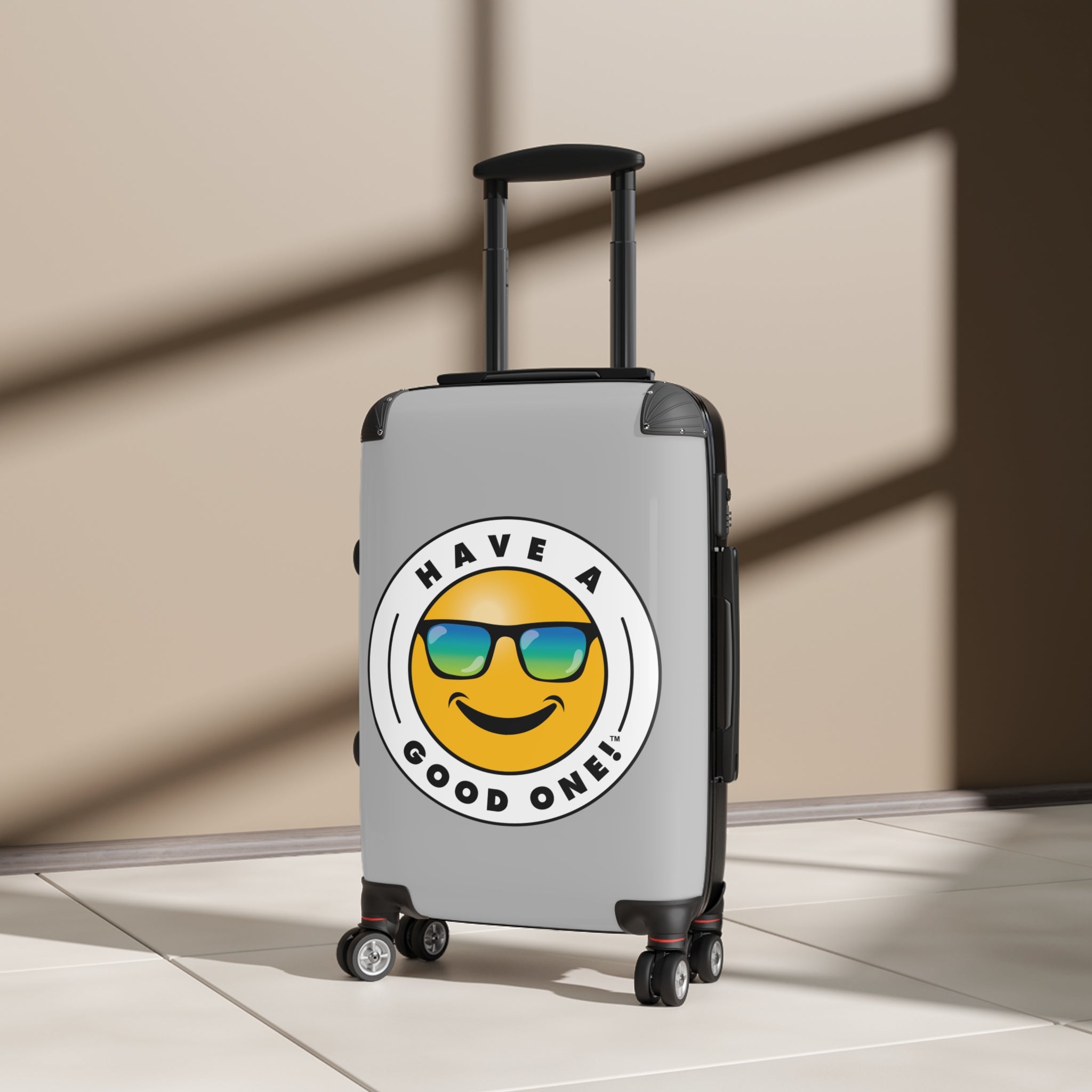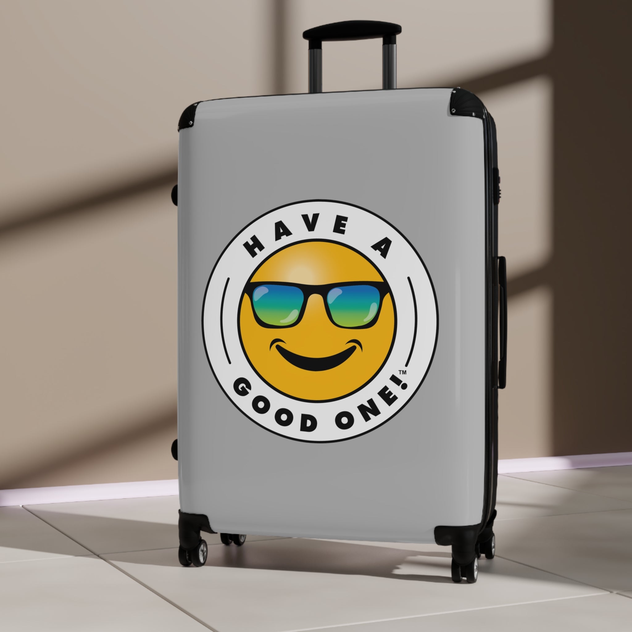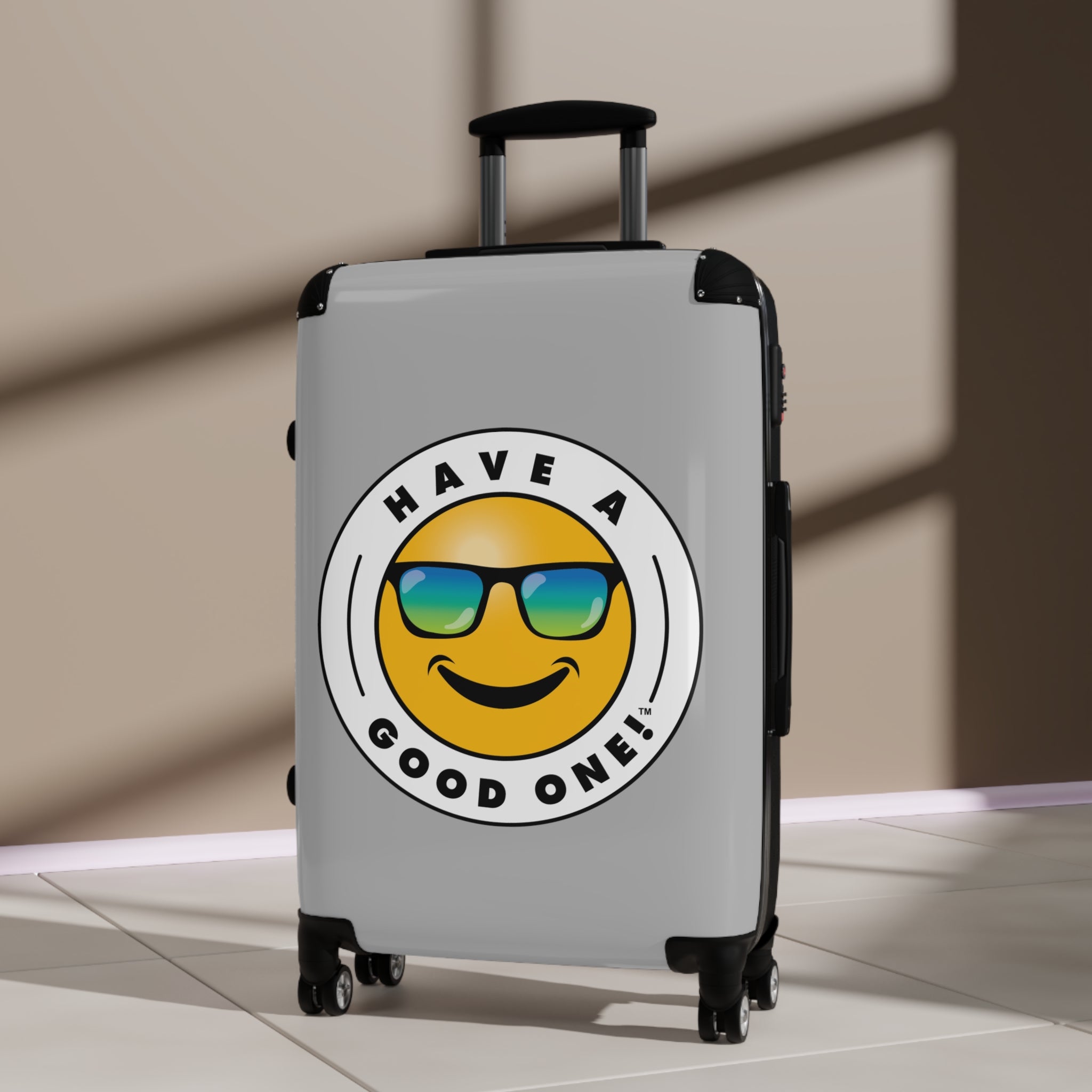 Grab N’ Go Have A Good One! Suitcases - Light Grey Color With Blue Green Have A Good One! Logo