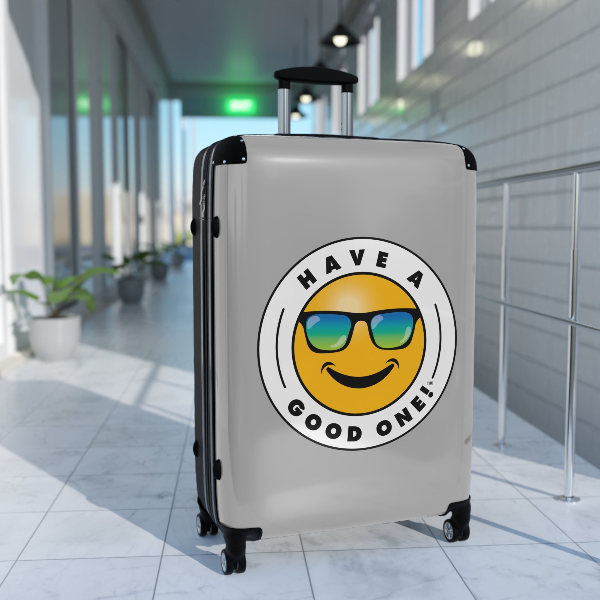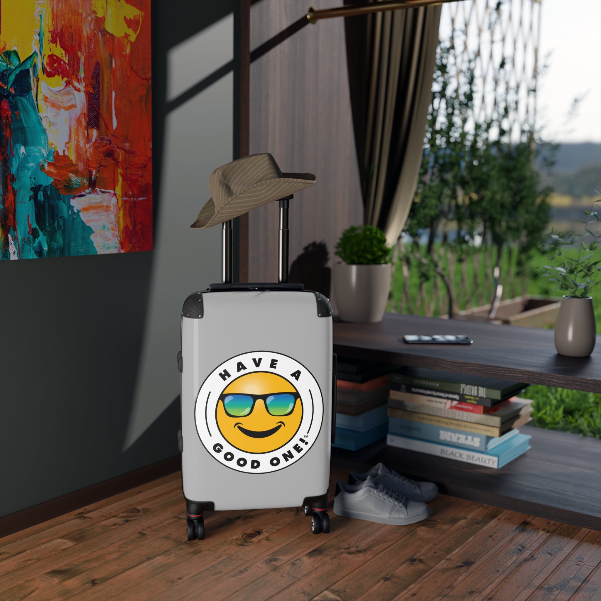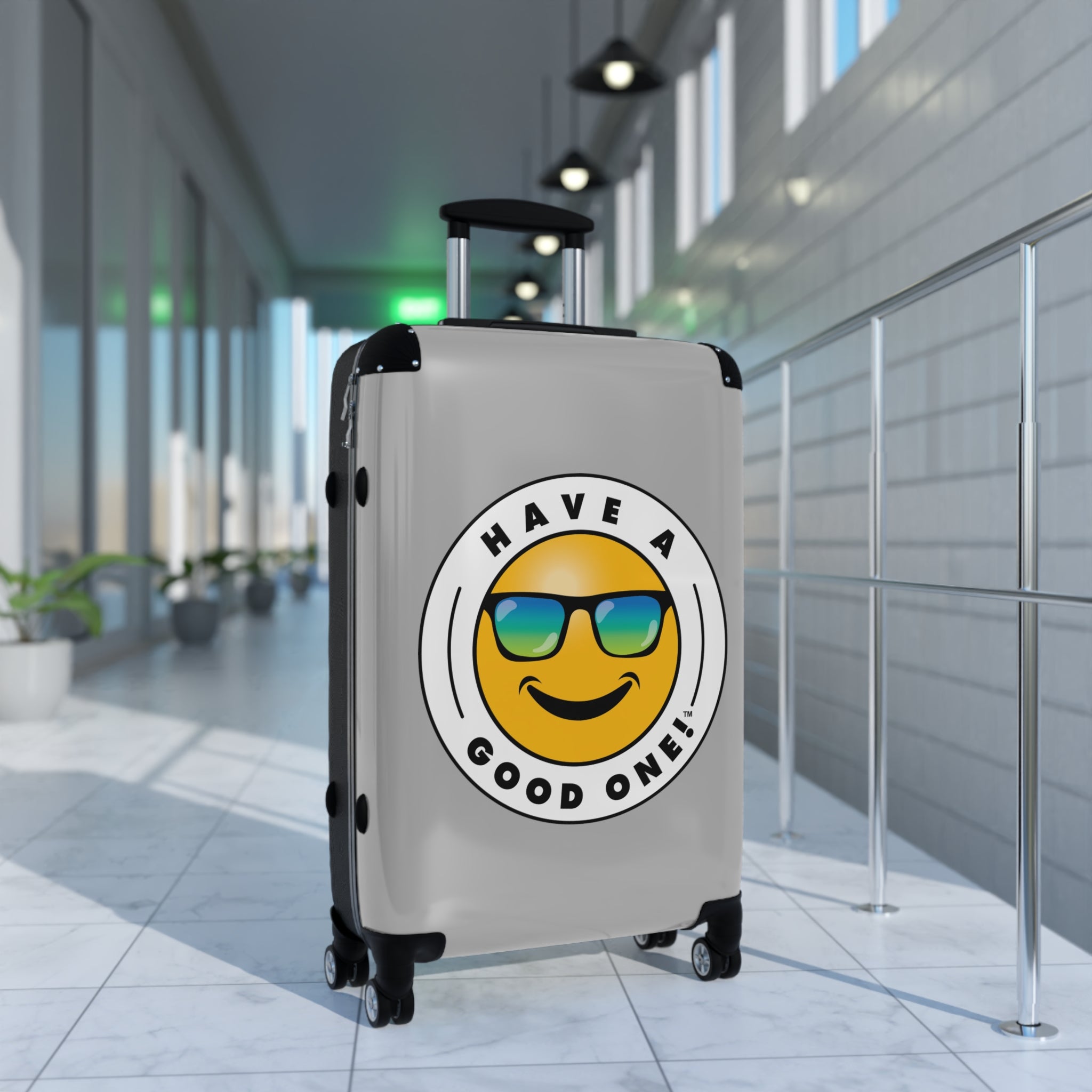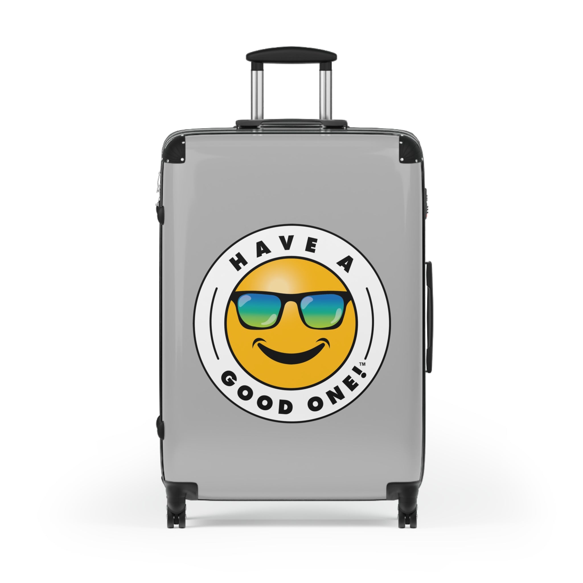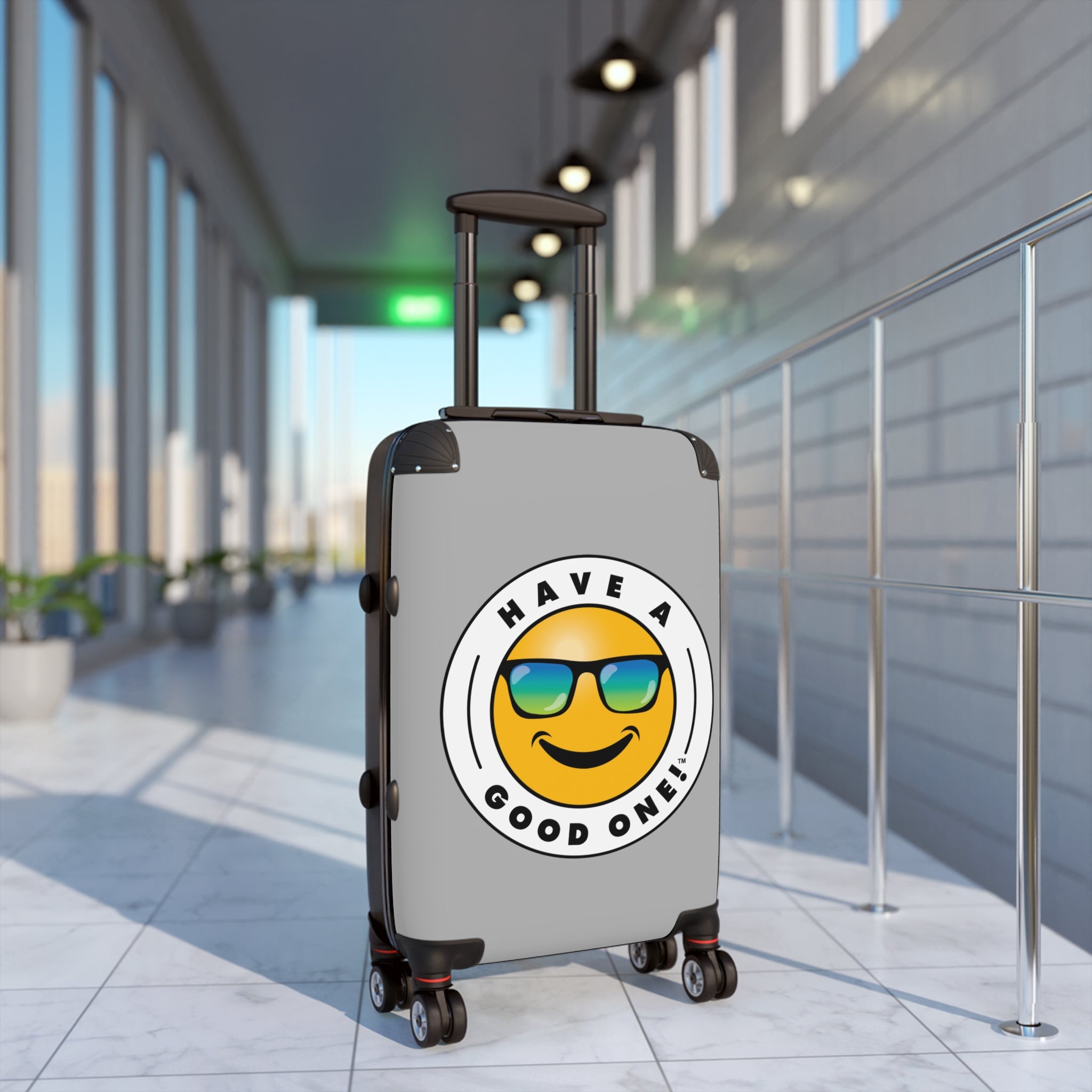 Grab N’ Go Have A Good One! Suitcases - Light Grey Color With Blue Green Have A Good One! Logo