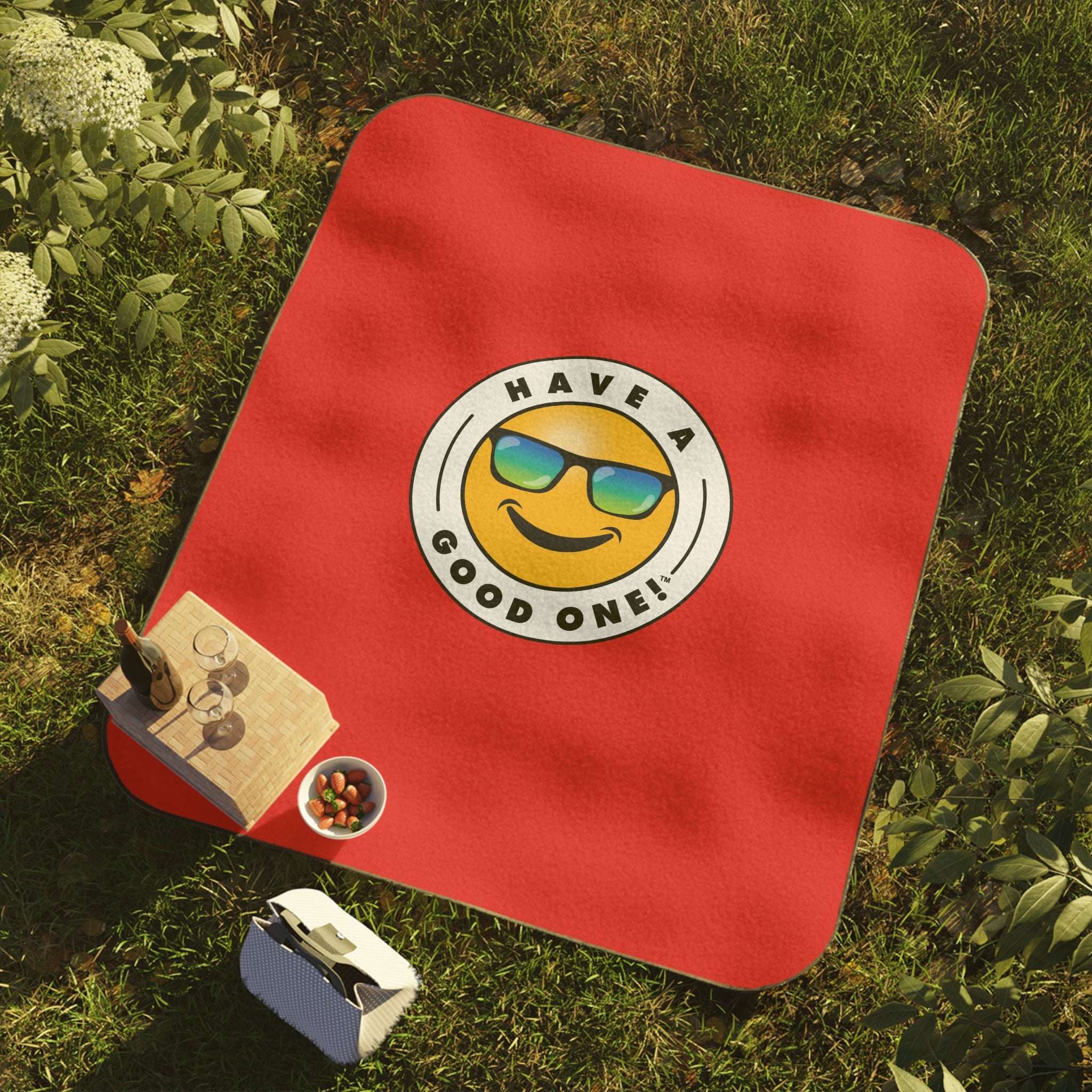 Grab N’ Go Picnic Blanket – Red Color With Blue Green Have A Good One! Logo