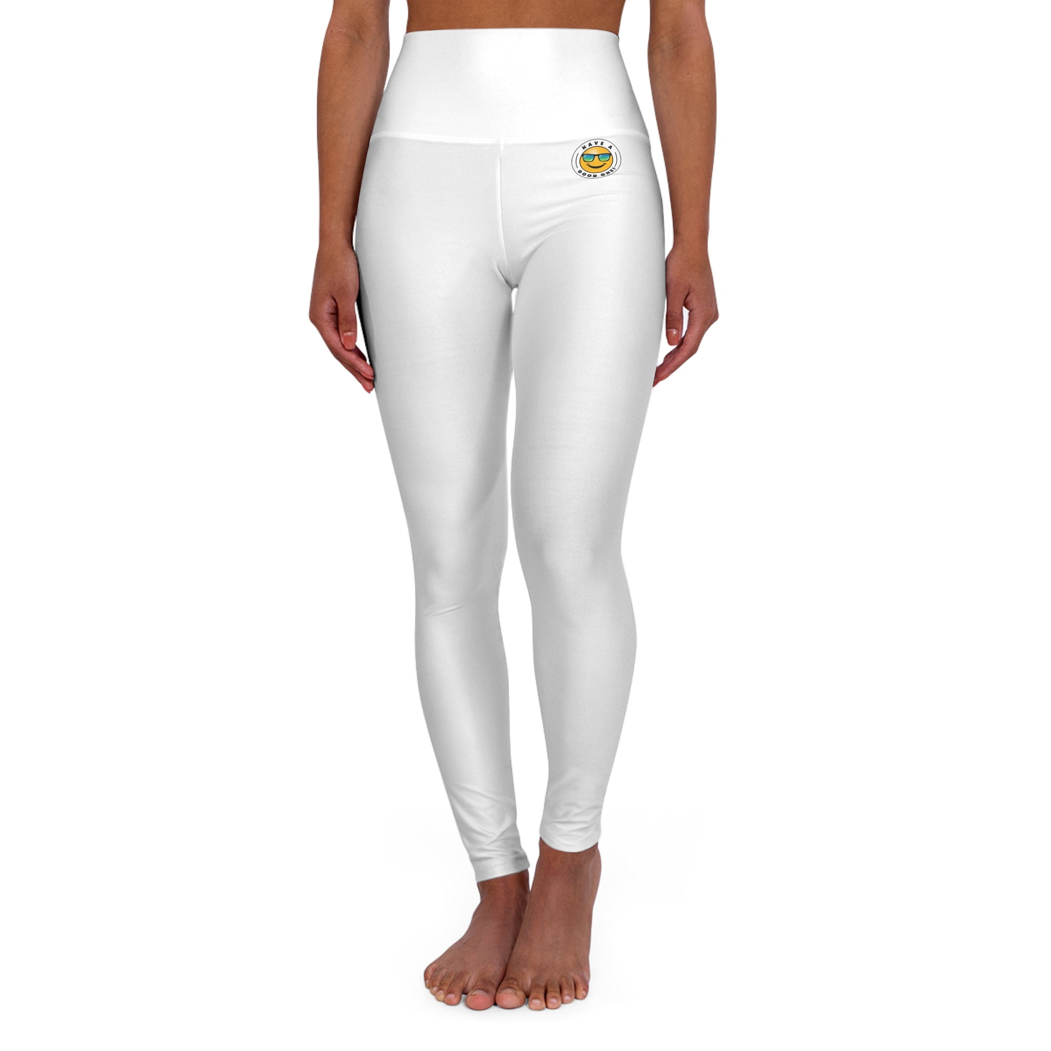 High Waisted Have A Good One! Yoga Leggings - White Color With Green Have A Good One Logo