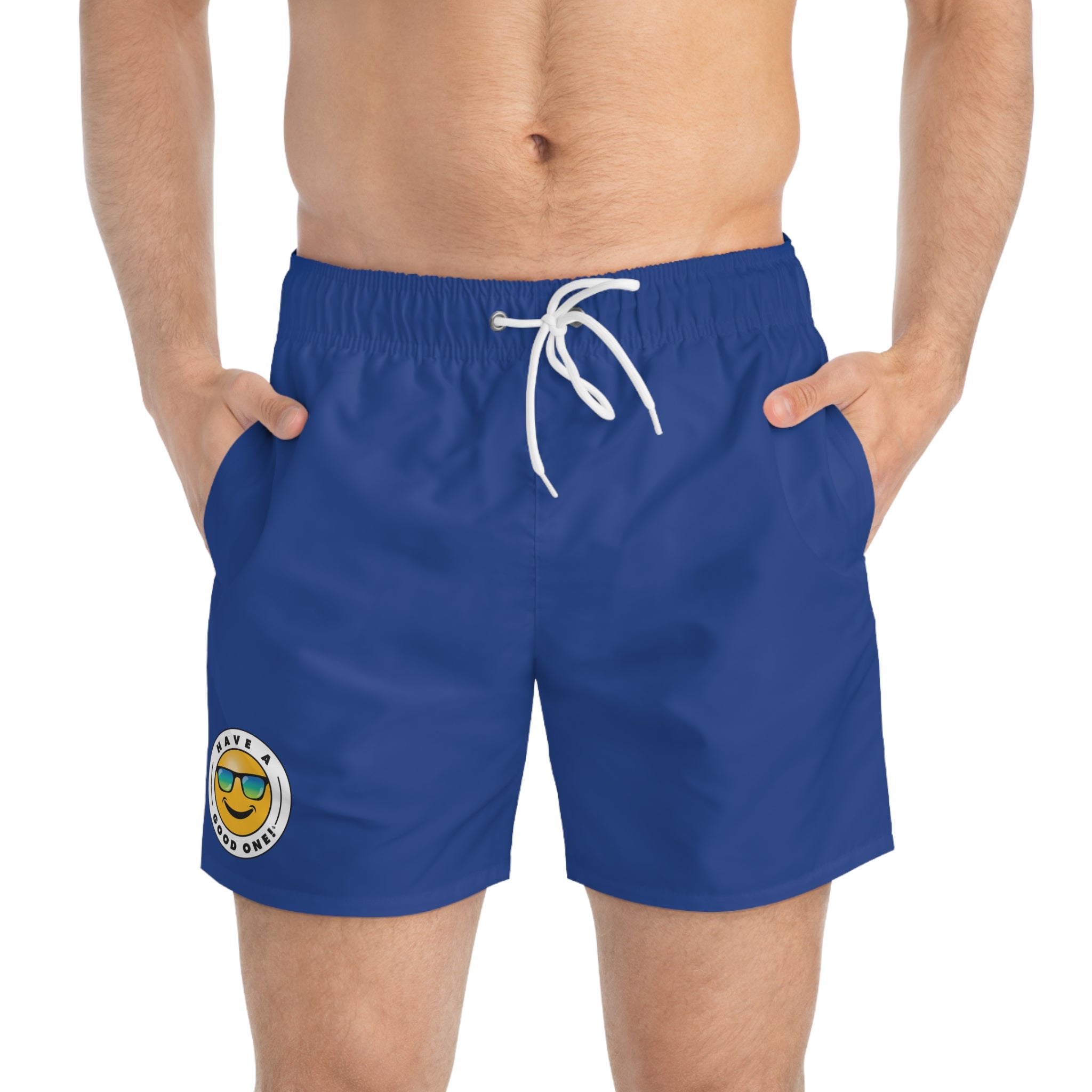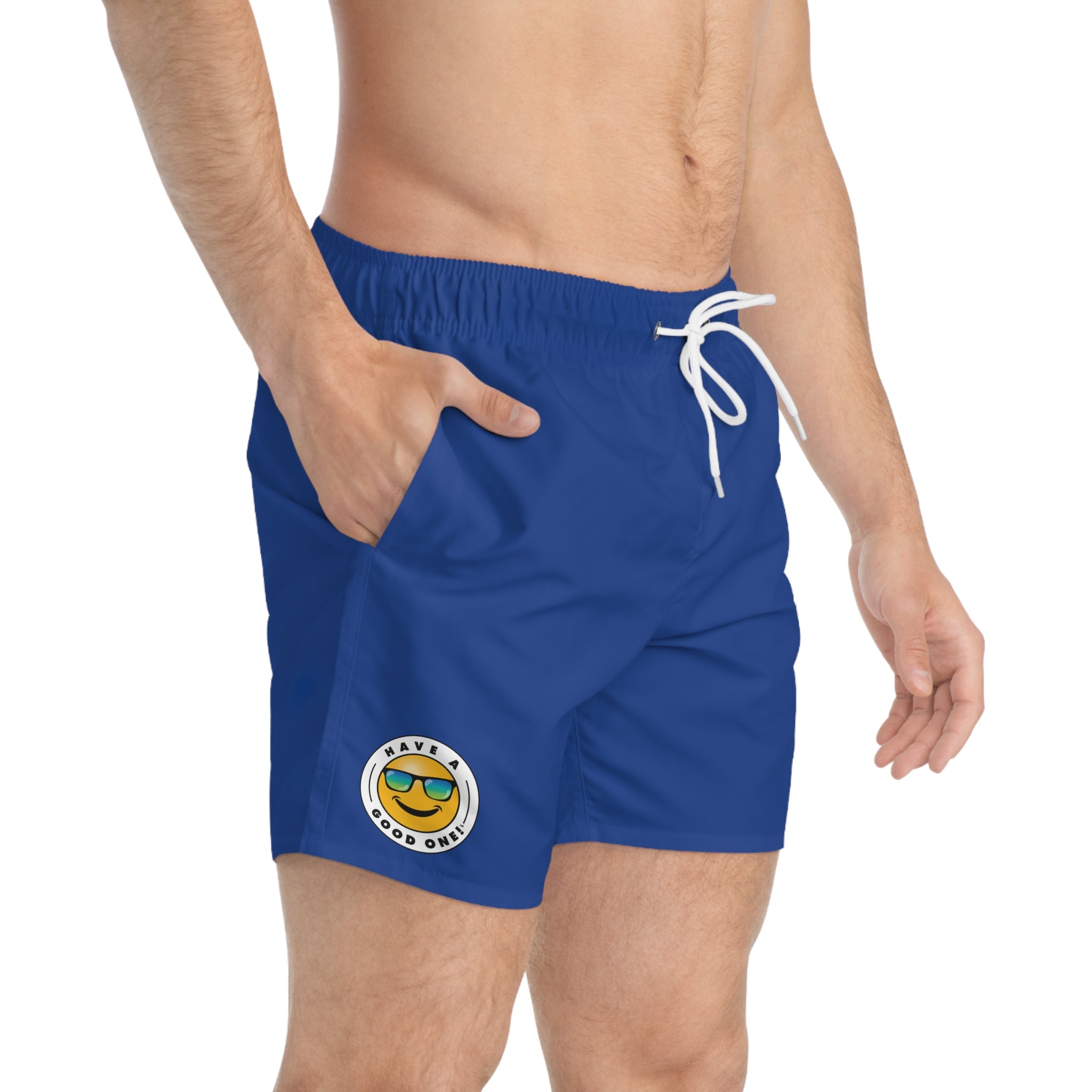 Men's Have A Good One! Swim Trunks - Dark Blue Color With Blue Green Logo