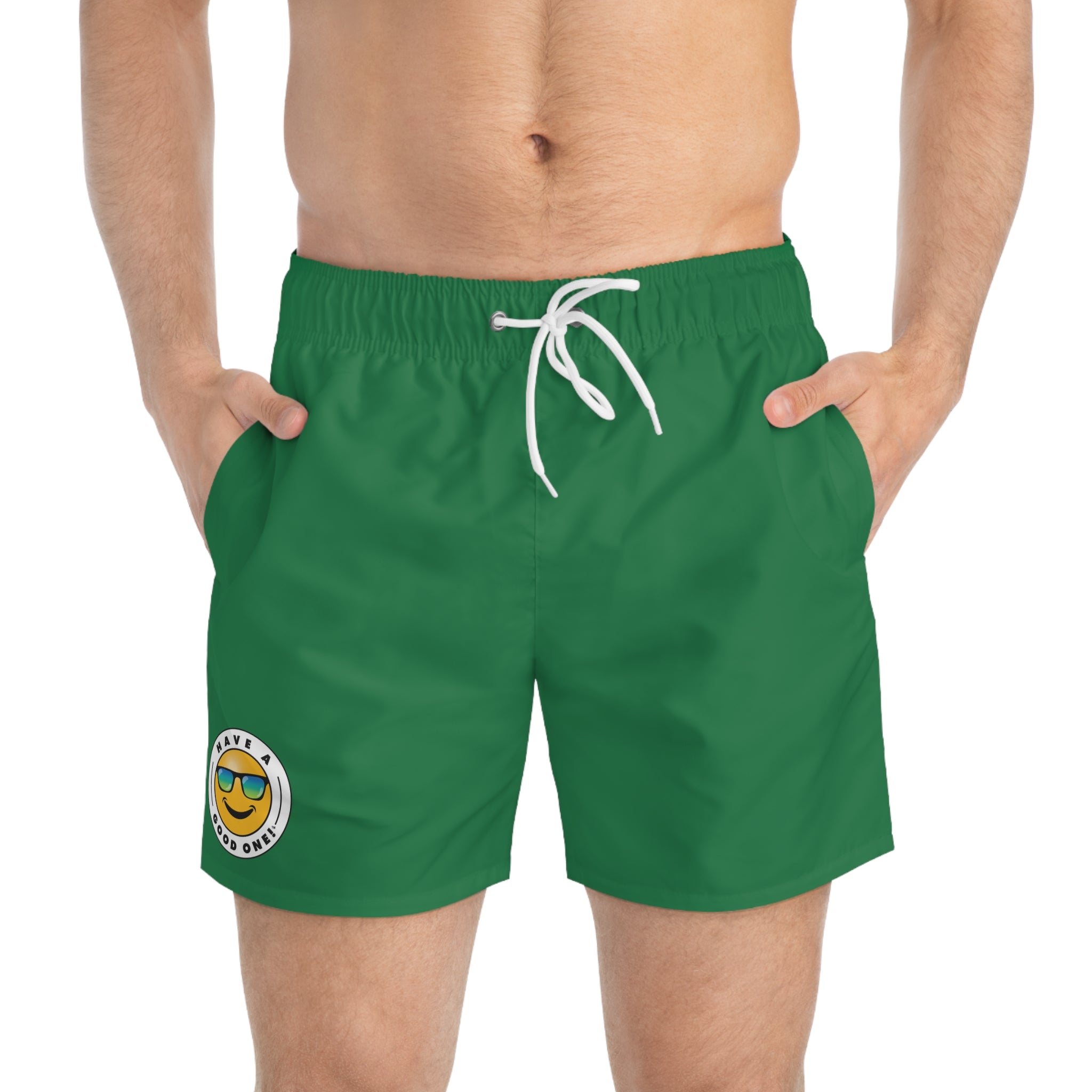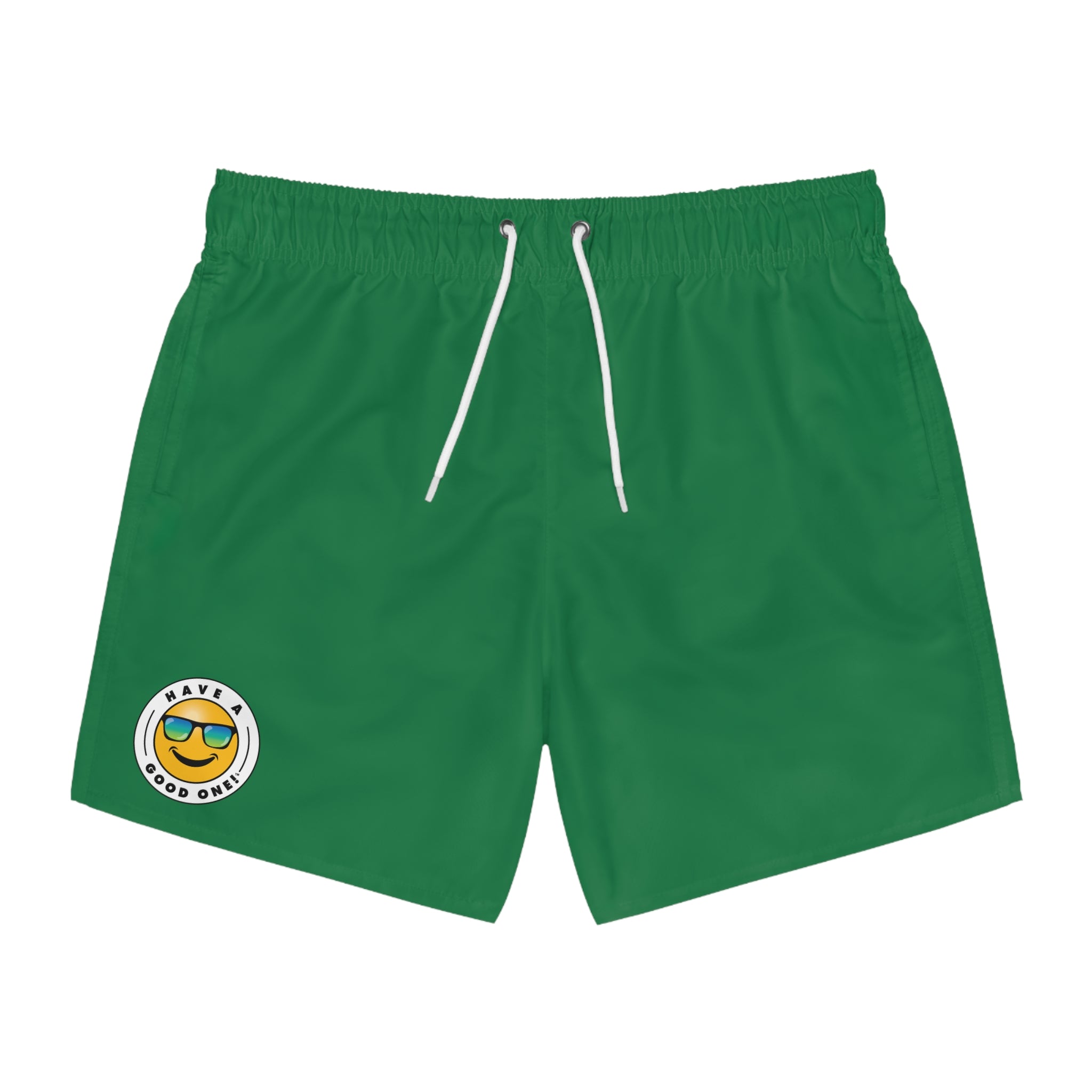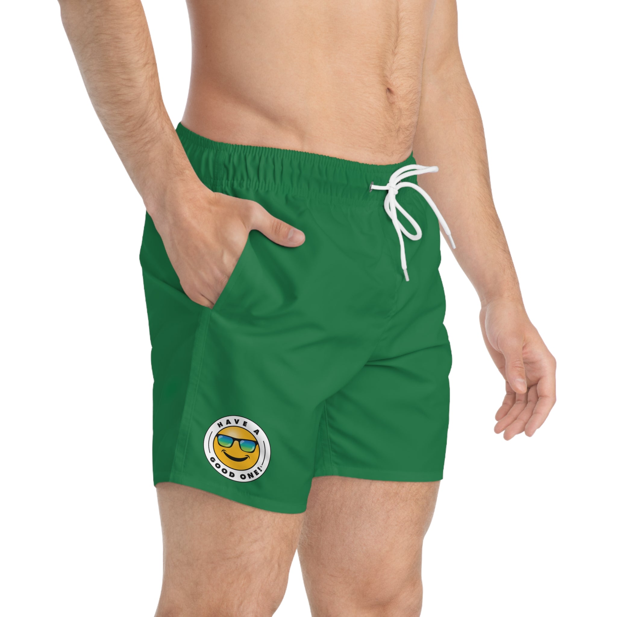 Men's Have A Good One! Swim Trunks - Dark Green Color With Blue Green Logo