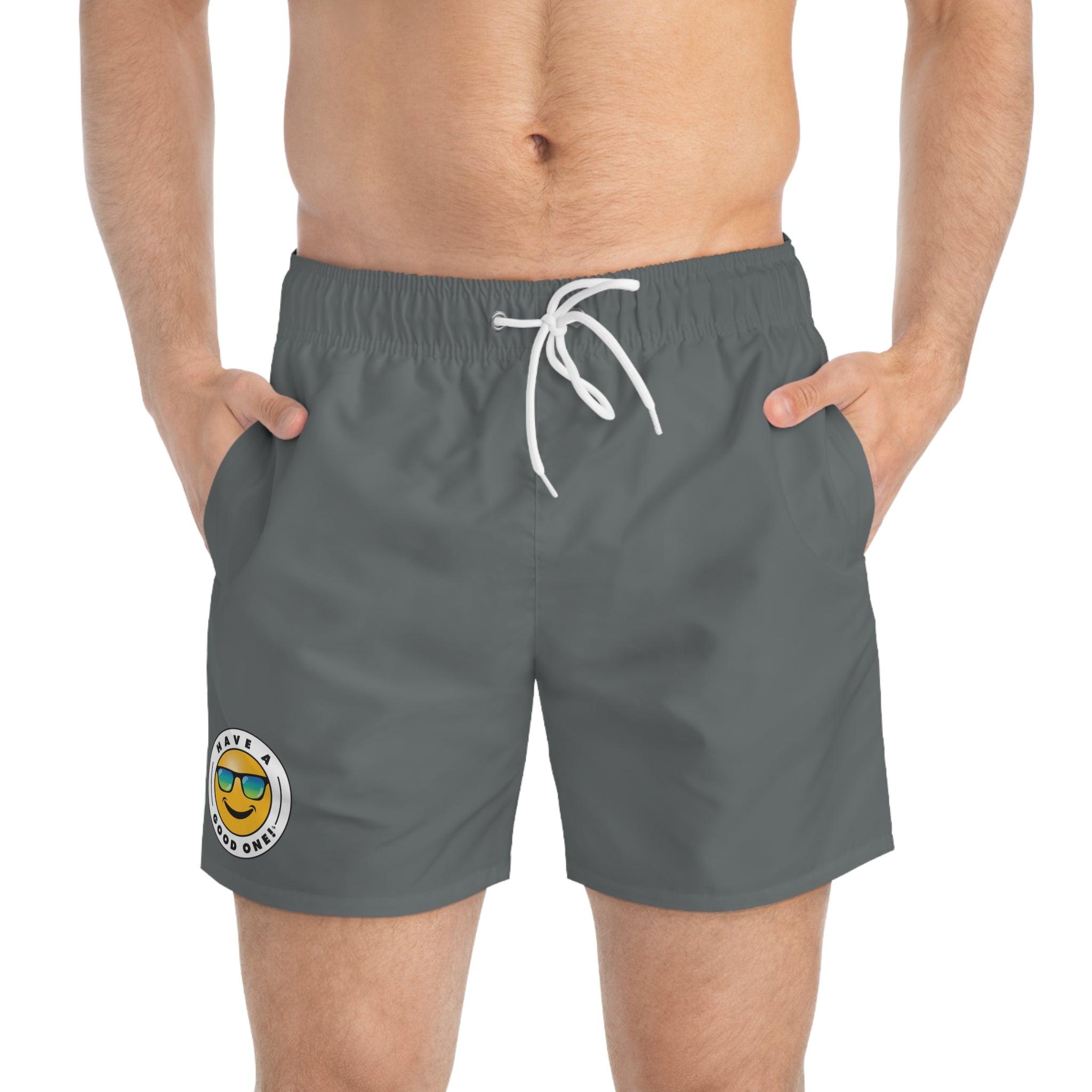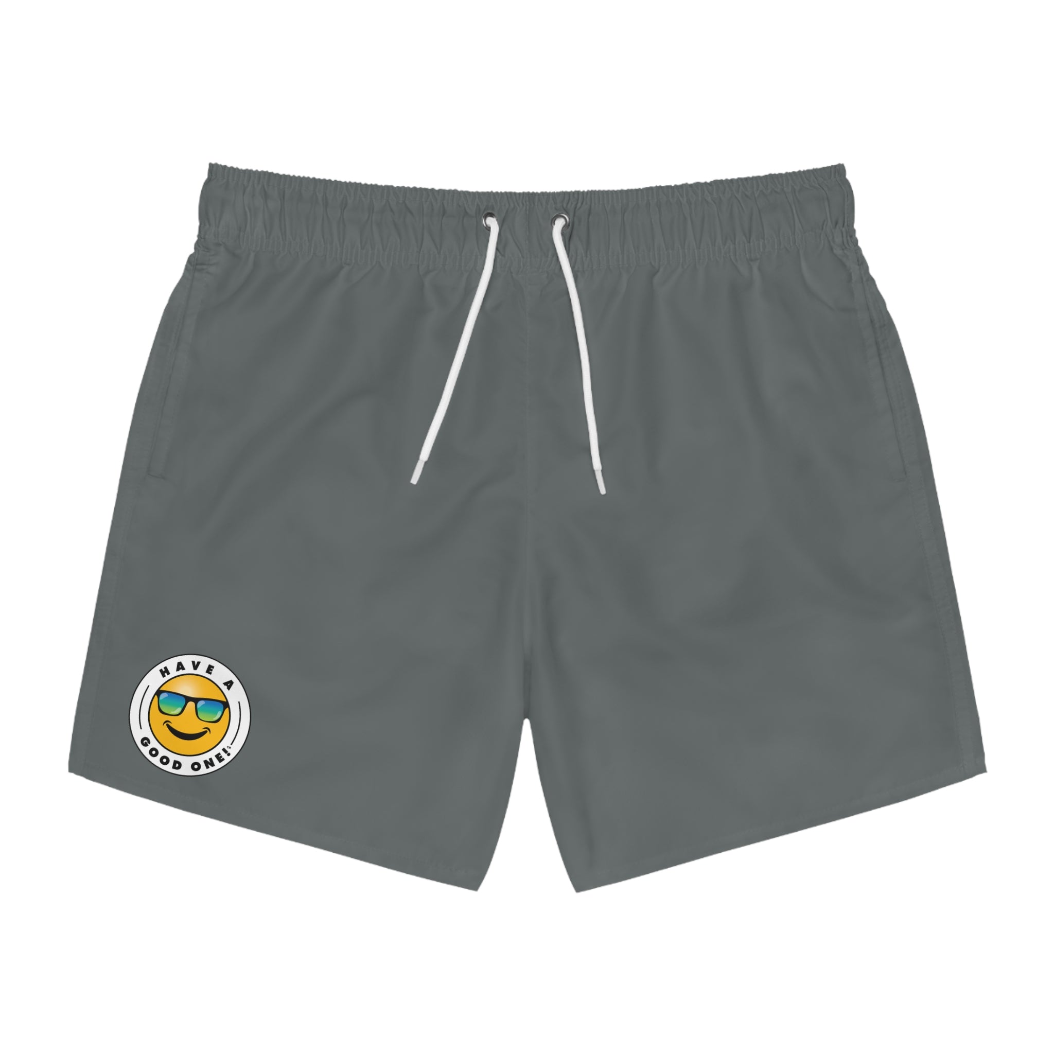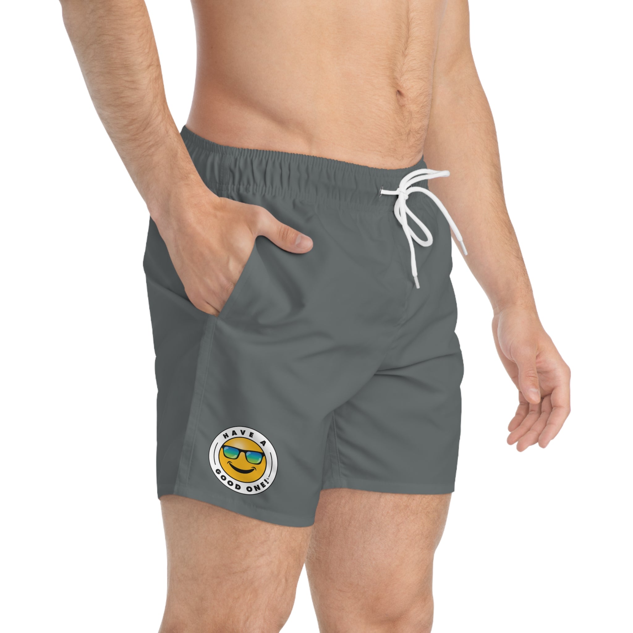 Men's Have A Good One! Swim Trunks - Dark Grey White Color With Blue Green Logo