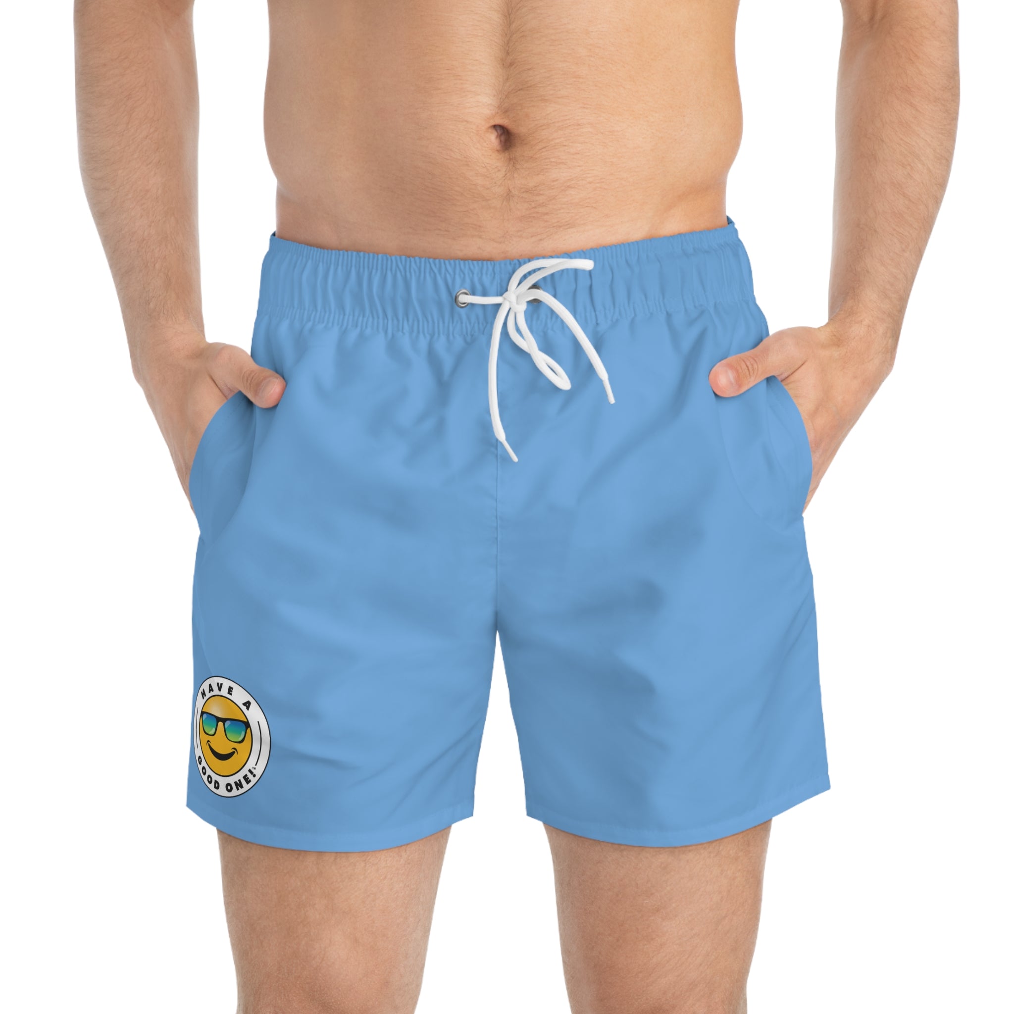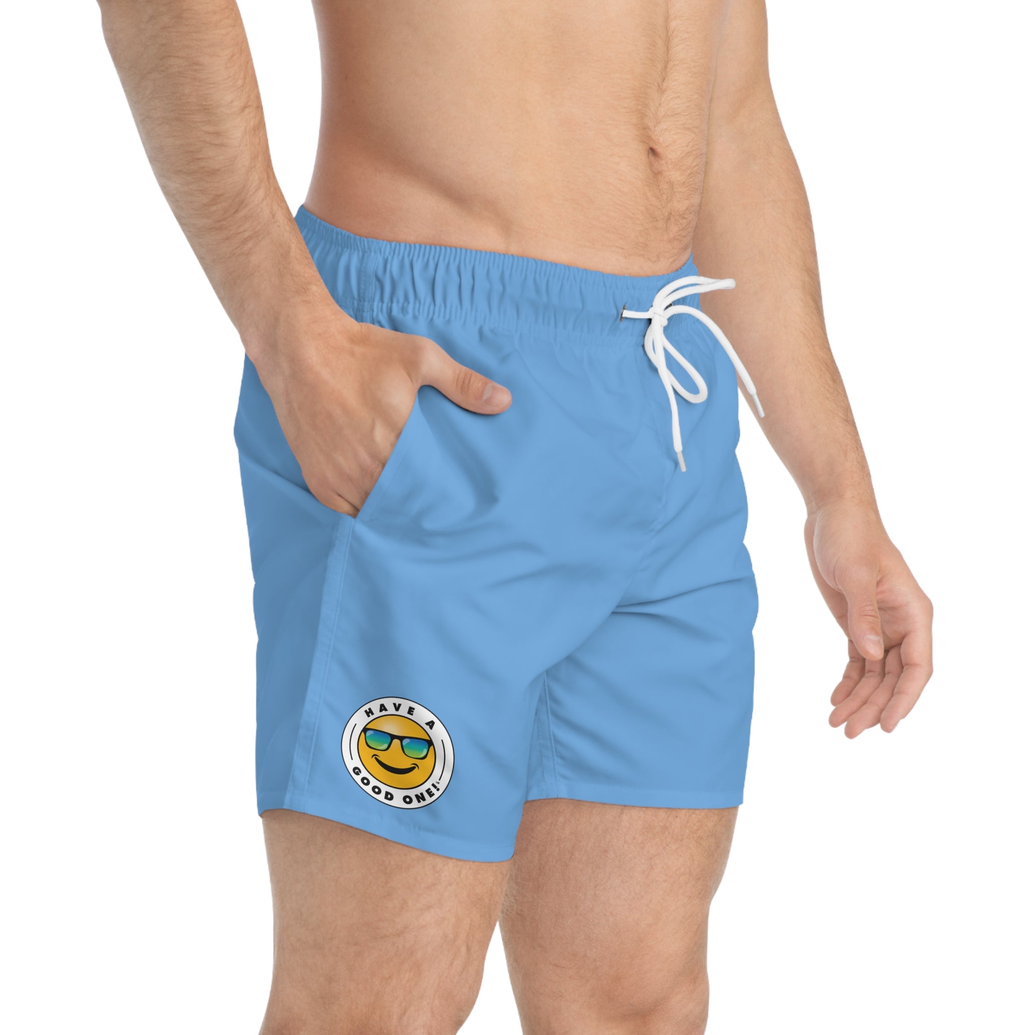 Men's Have A Good One! Swim Trunks - Light Blue Color With Blue Green Logo