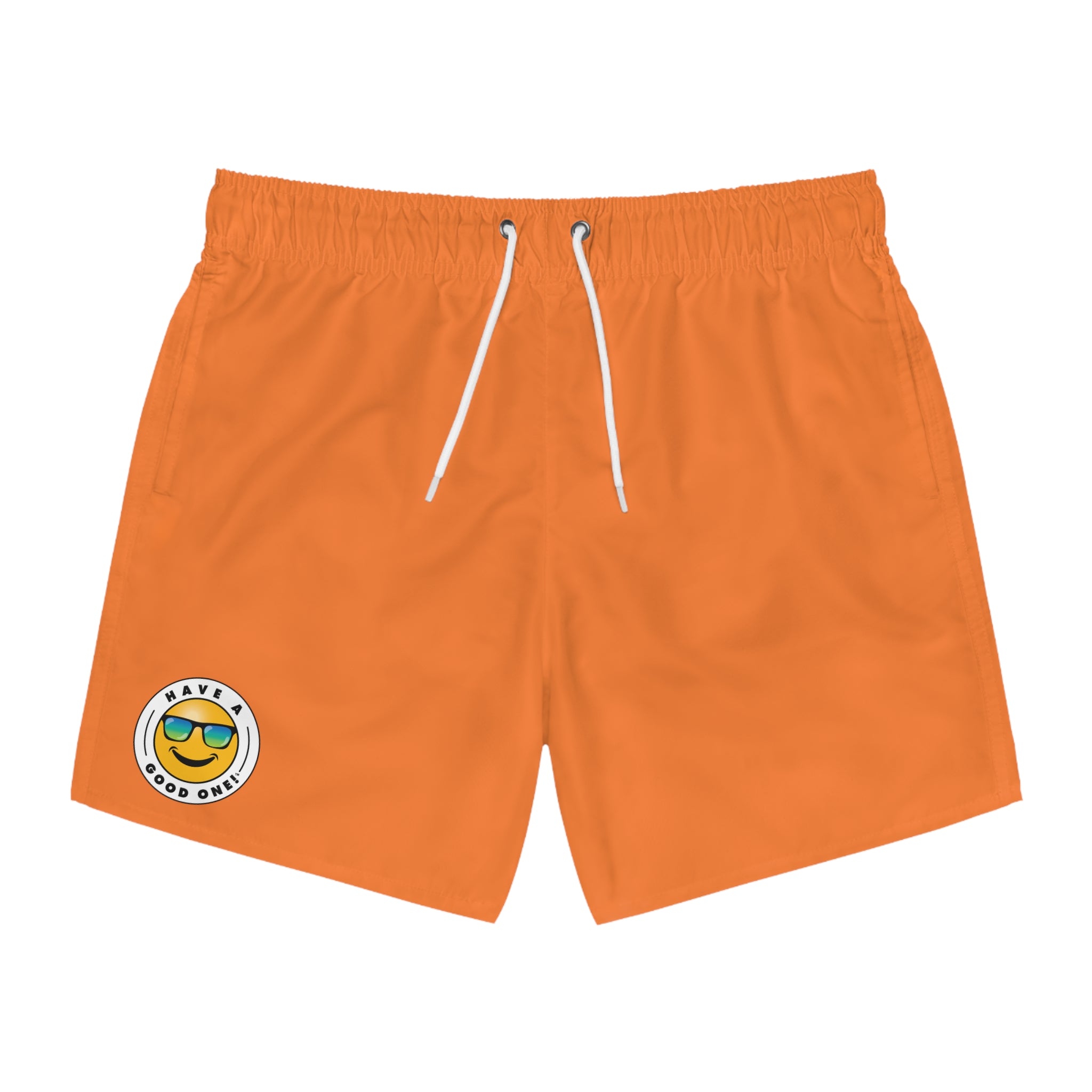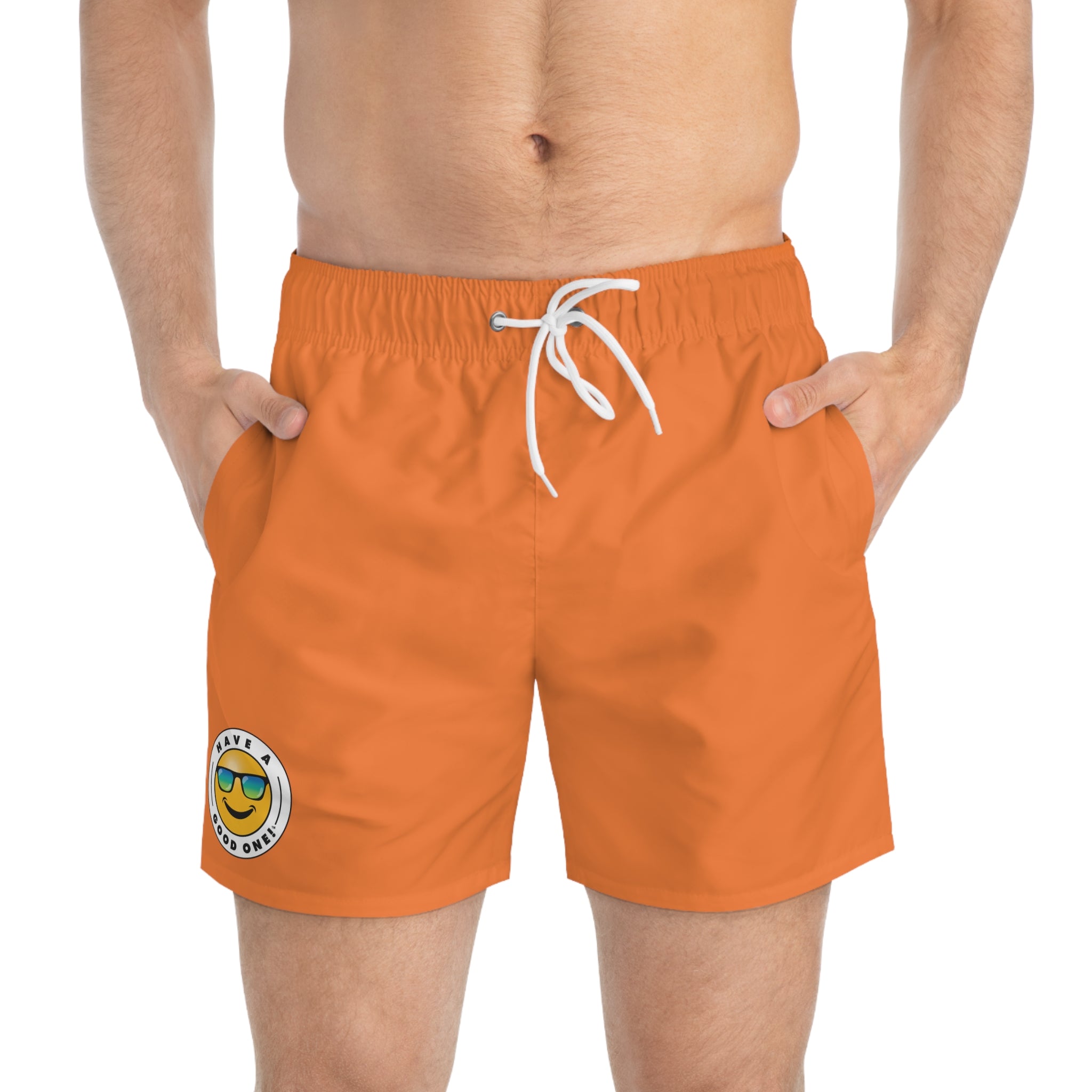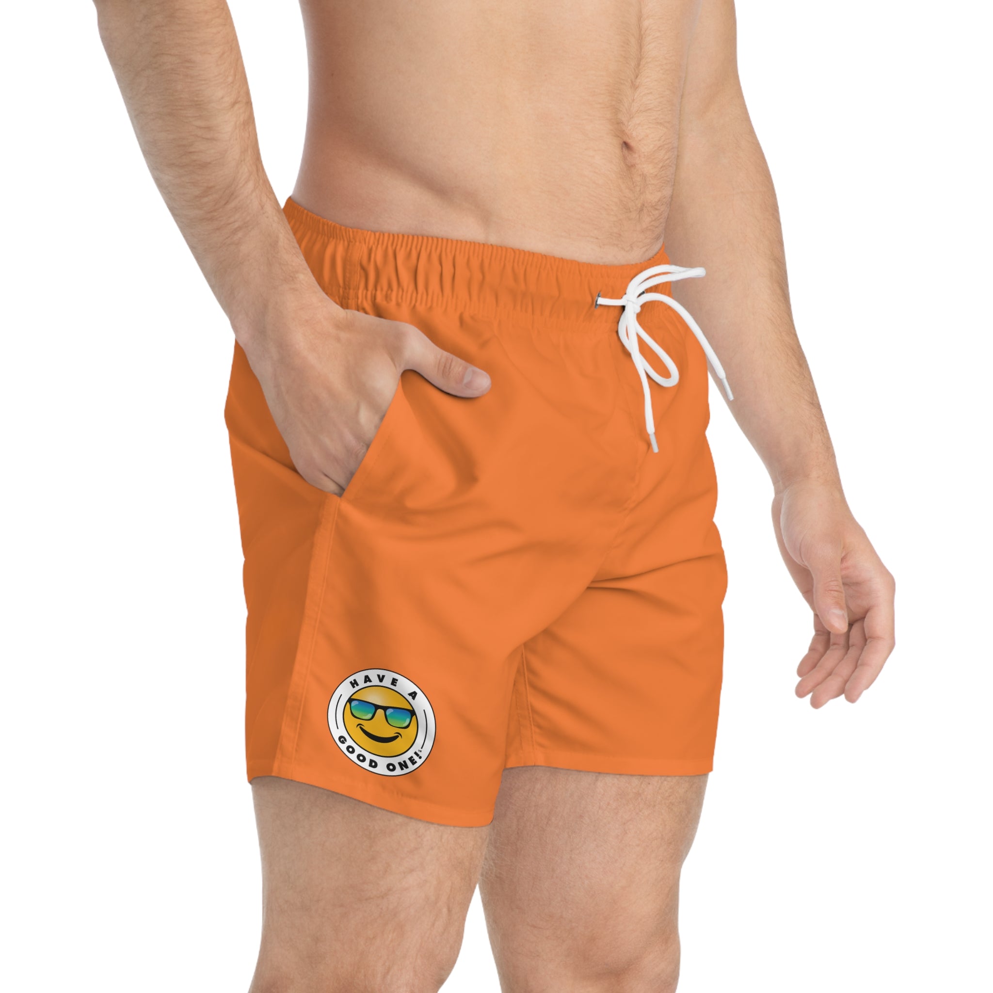 Men's Have A Good One! Swim Trunks - Orange Color With Blue Green Logo