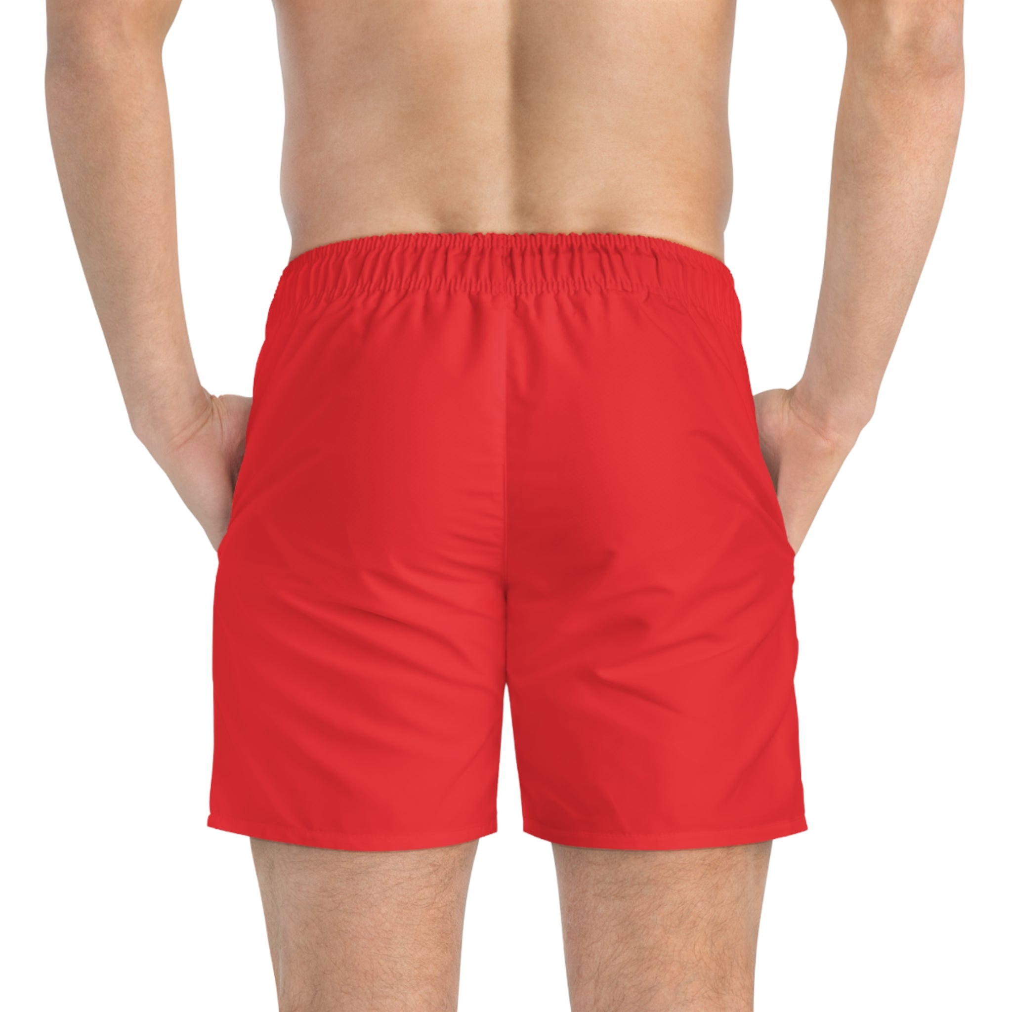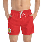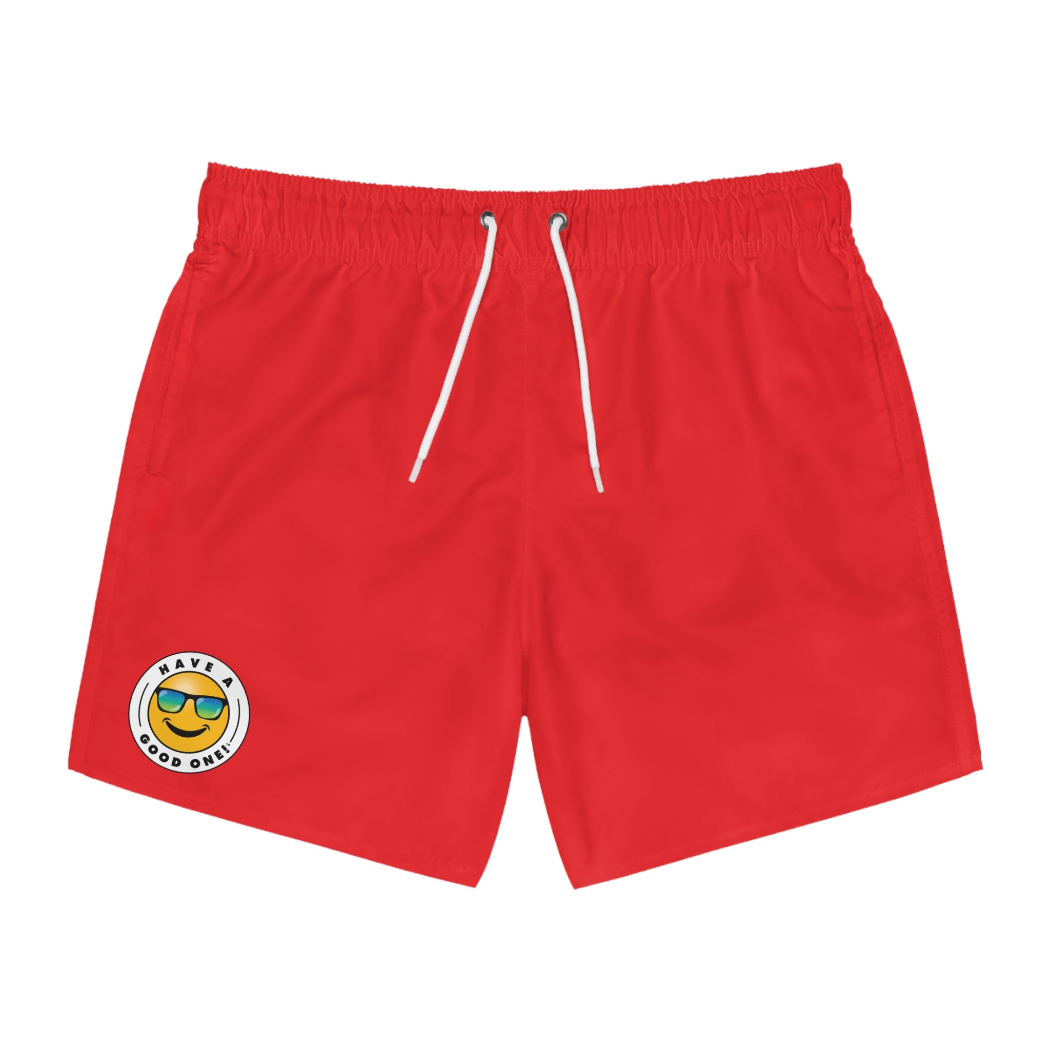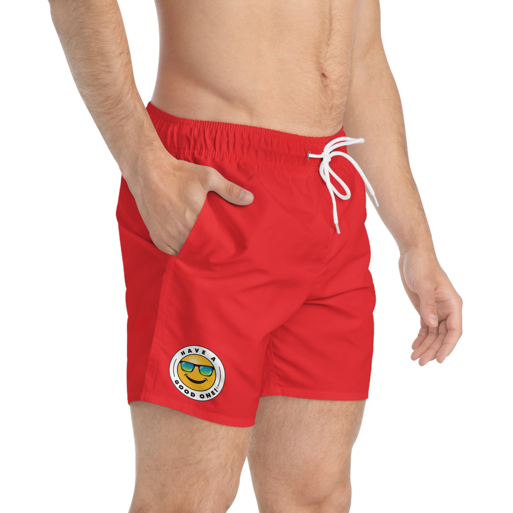 Men's Have A Good One! Swim Trunks - Red Color With Blue Green Logo