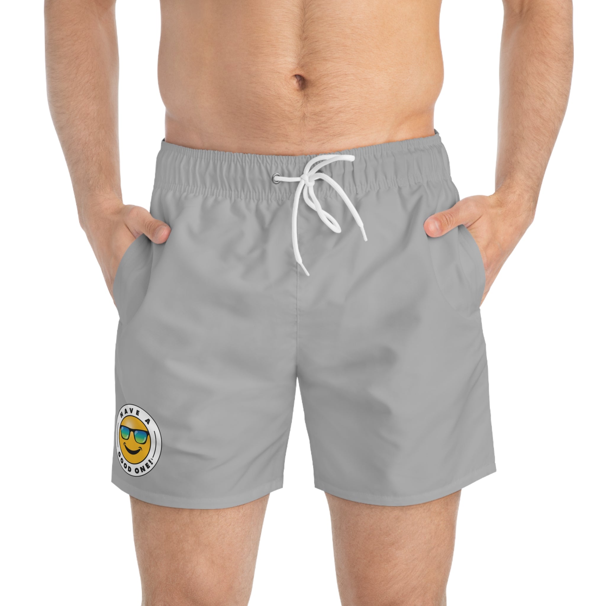 Men's Have A Good One! Swim Trunks - Light Grey White Color With Blue Green Logo