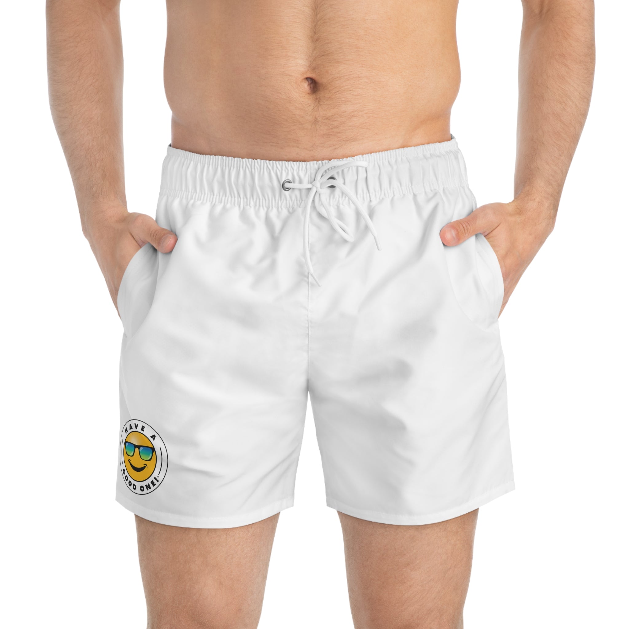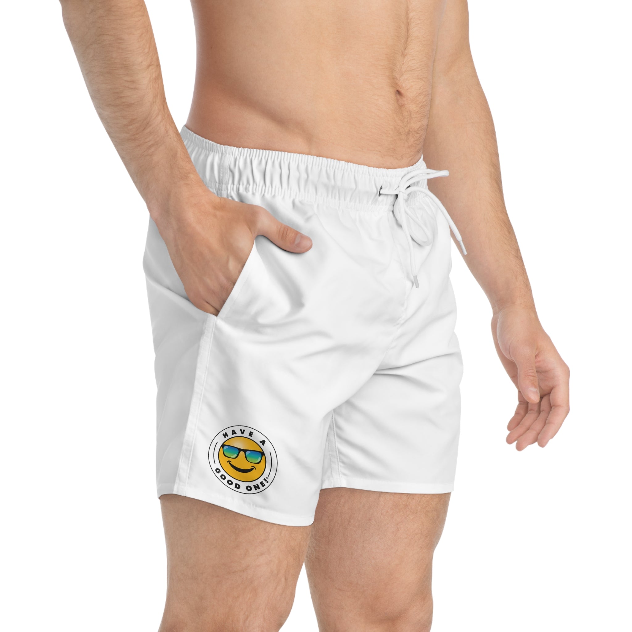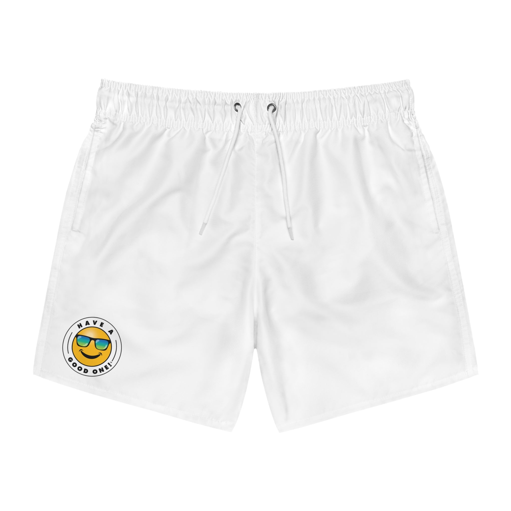Men's Have A Good One! Swim Trunks - White Color With Blue Green Logo
